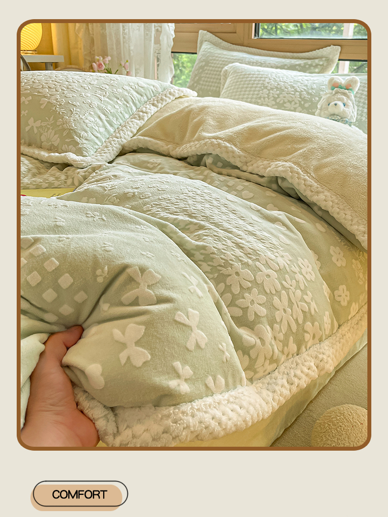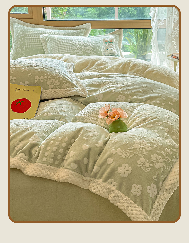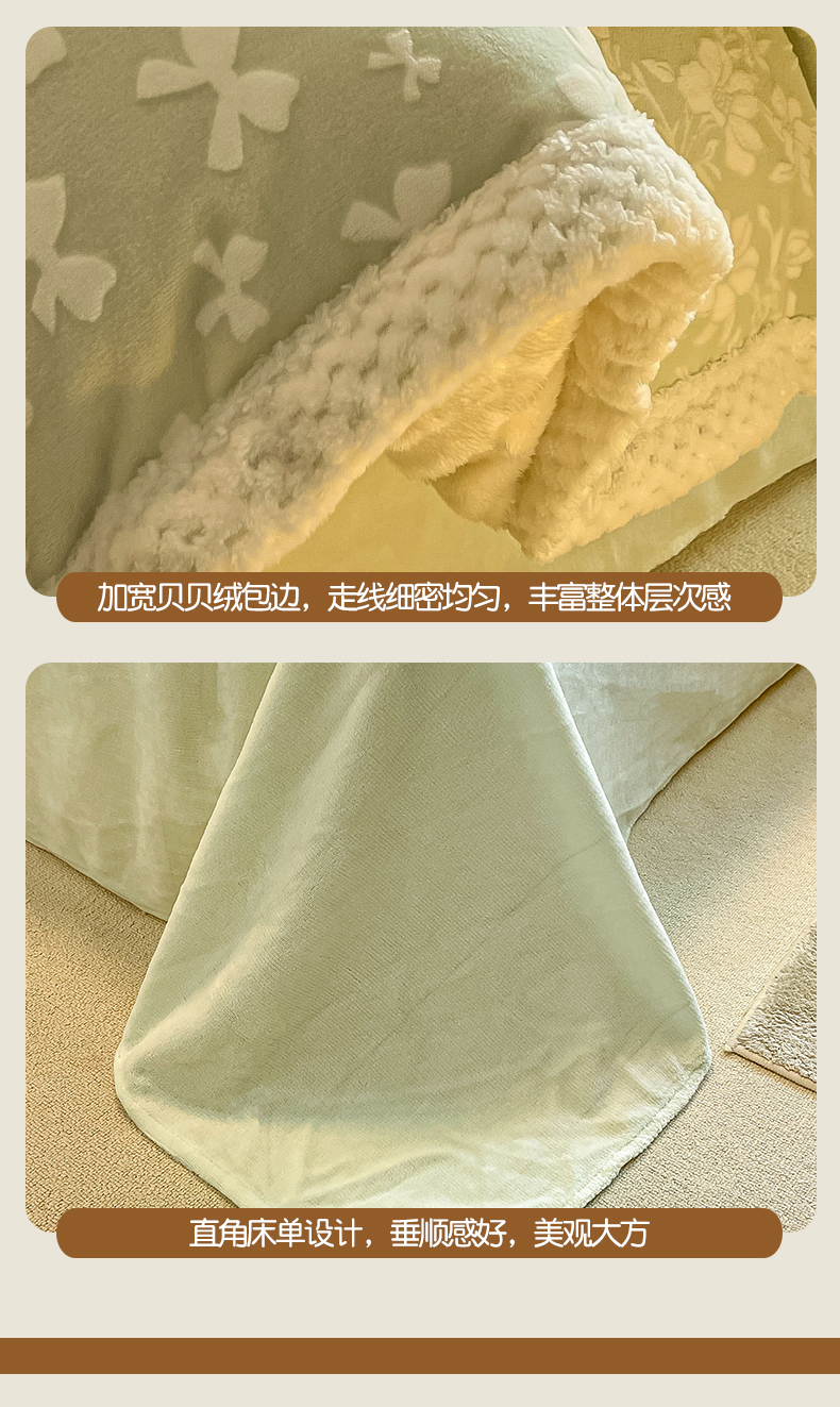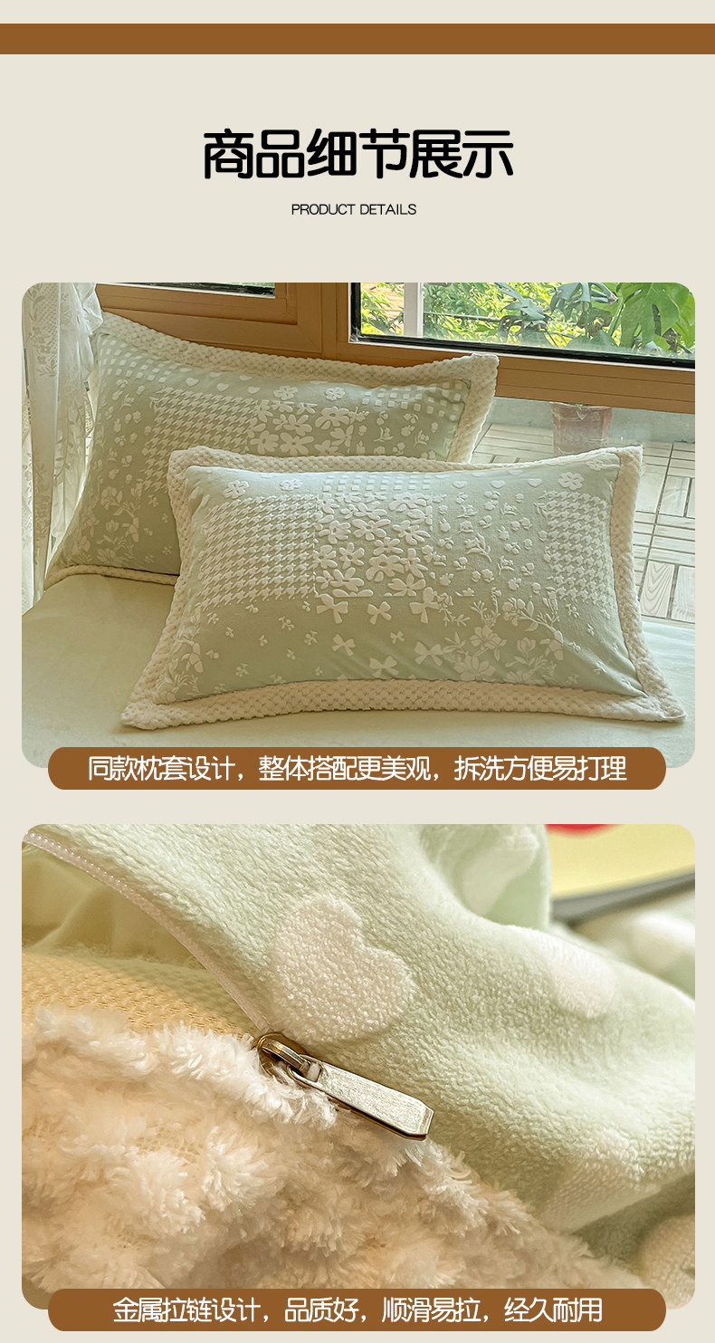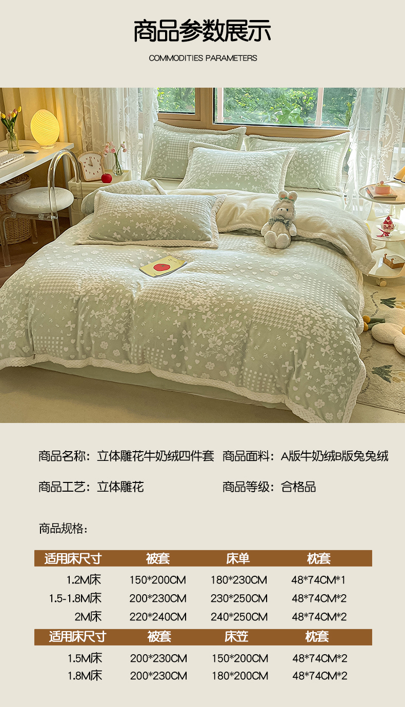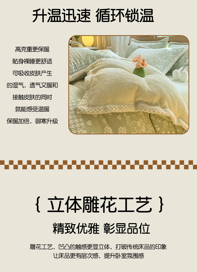 当前位置: 91家纺网 > 商品网购 > 床品套件 > 四件套 > 雕花绒四件套 > 琪格格纺织 2025新款全消光包边立体简约清新雕花绒四件套 雕花包边-阿芙朵 绿