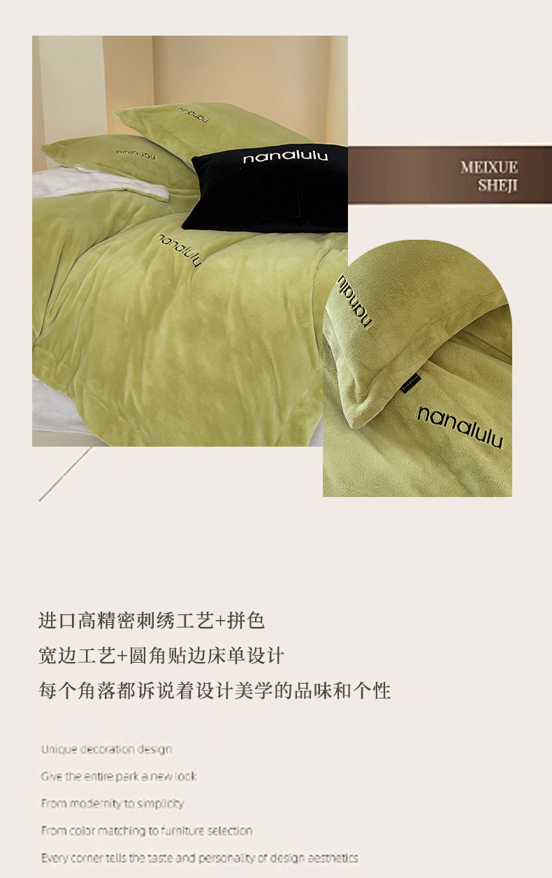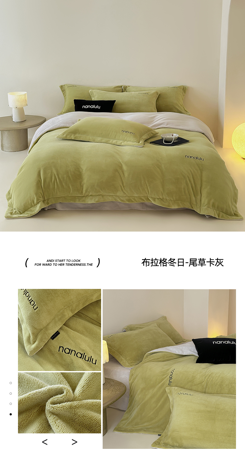 商品名称:JUICY 橘滋家纺 2025新款高奢软糯质感极简慕斯牛奶绒四件套-布拉格冬日 布拉格冬日-苍苔绿