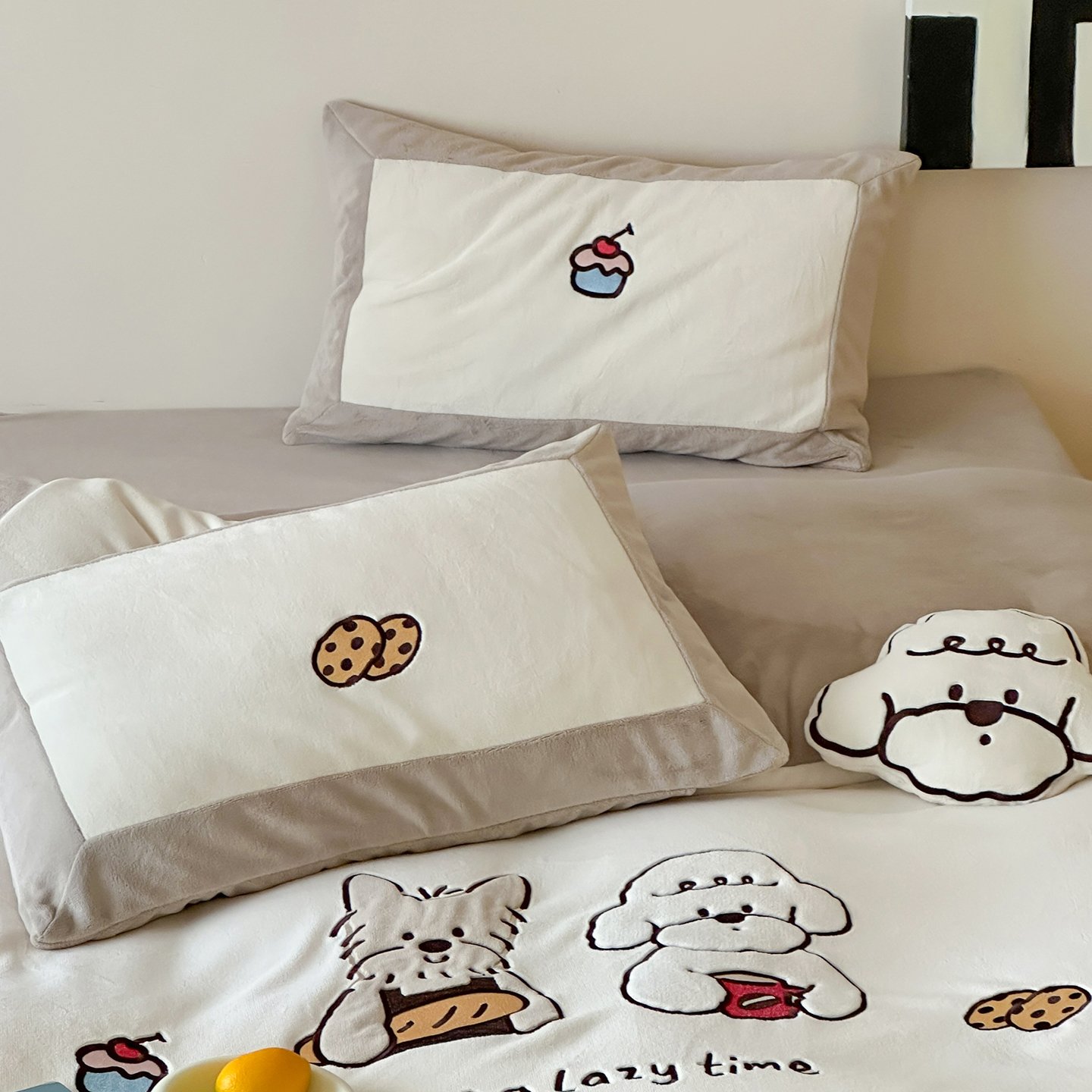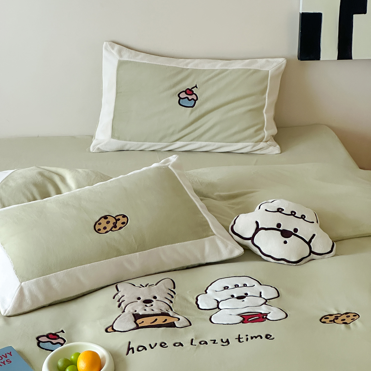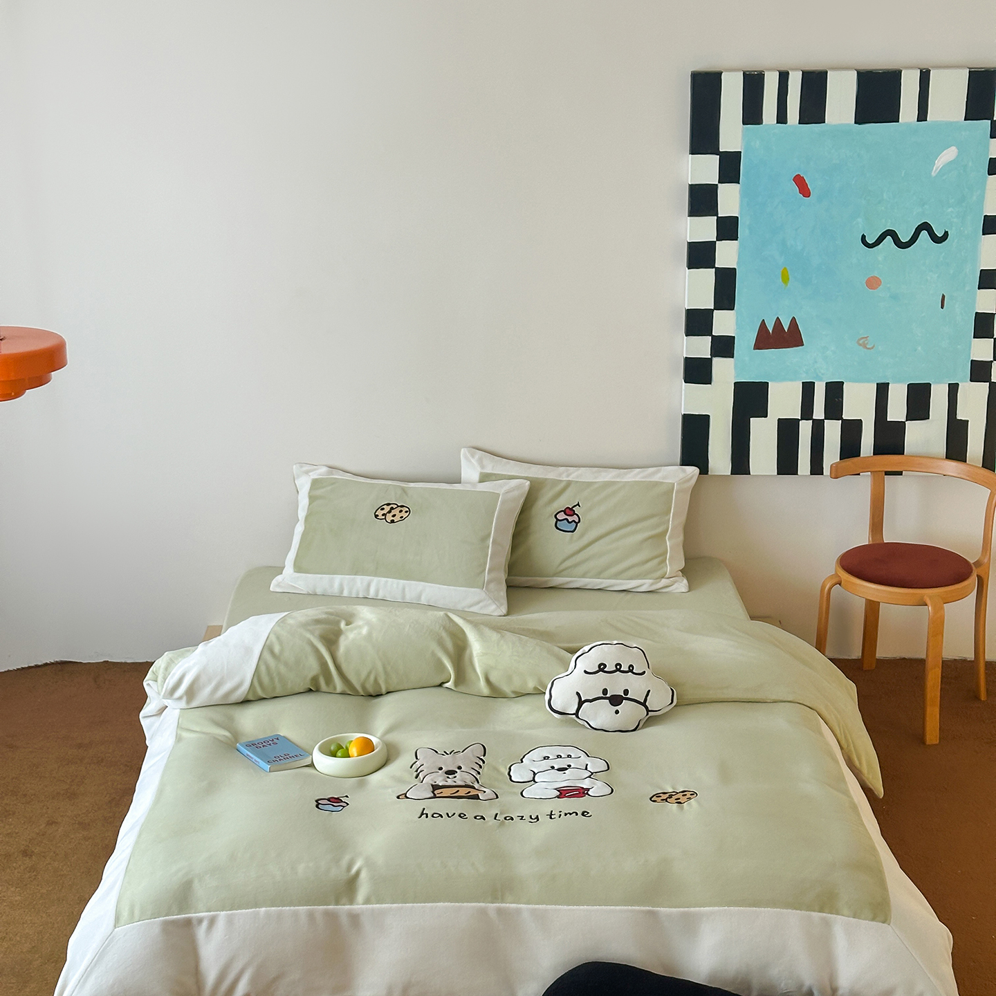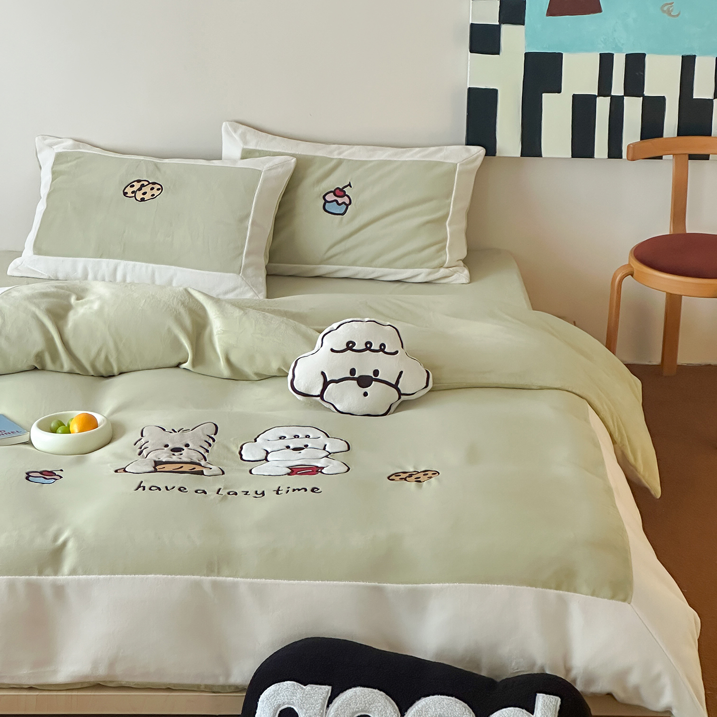商品名称:爱丽丝 2025新款230克全消光牛奶绒贴布系列四件套-好朋友 奶油绿