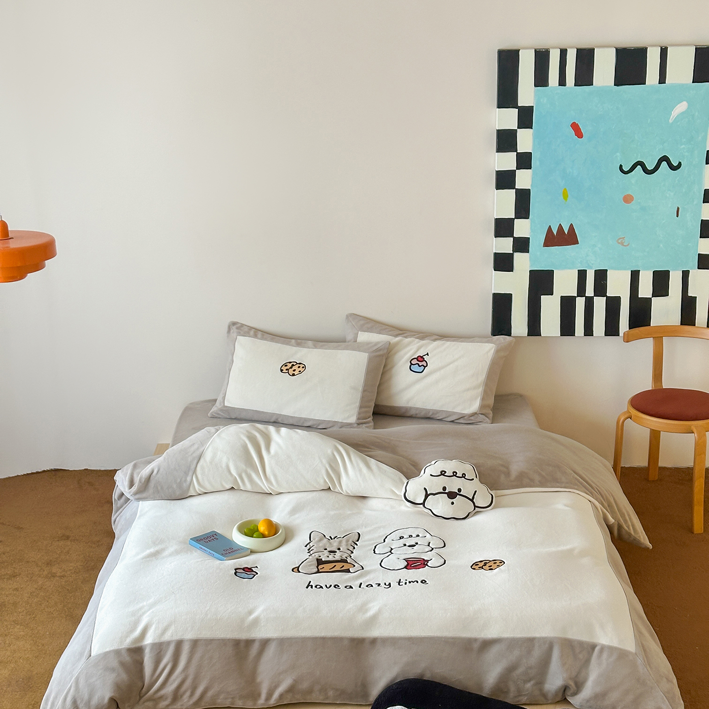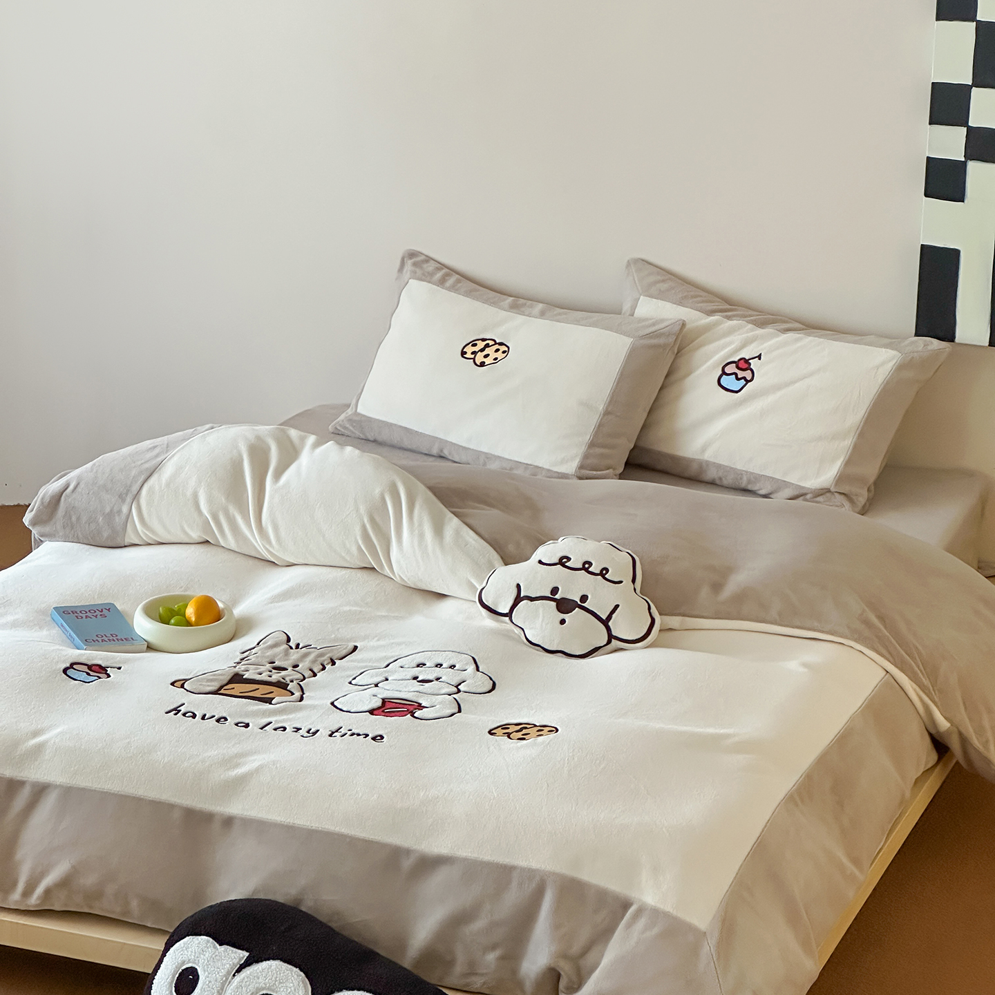 爱丽丝 2025新款230克全消光牛奶绒贴布系列四件套-好朋友 奶油绿