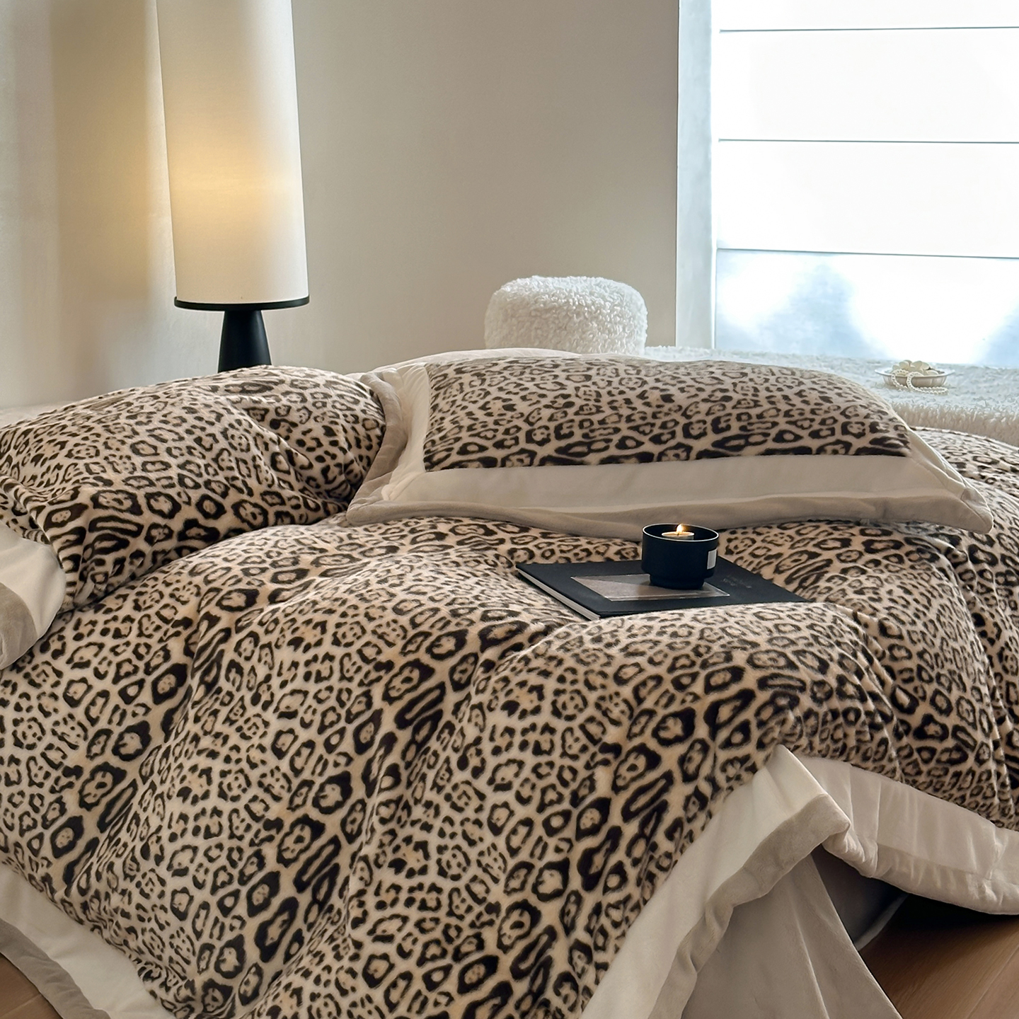 商品名称:爱丽丝 2025新款全消光超柔牛奶绒四件套-雪貂毛系列 豹富-深咖