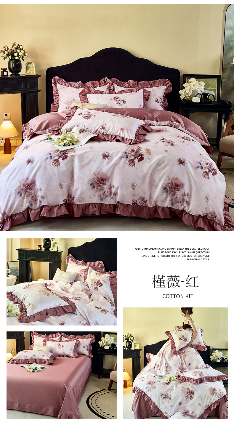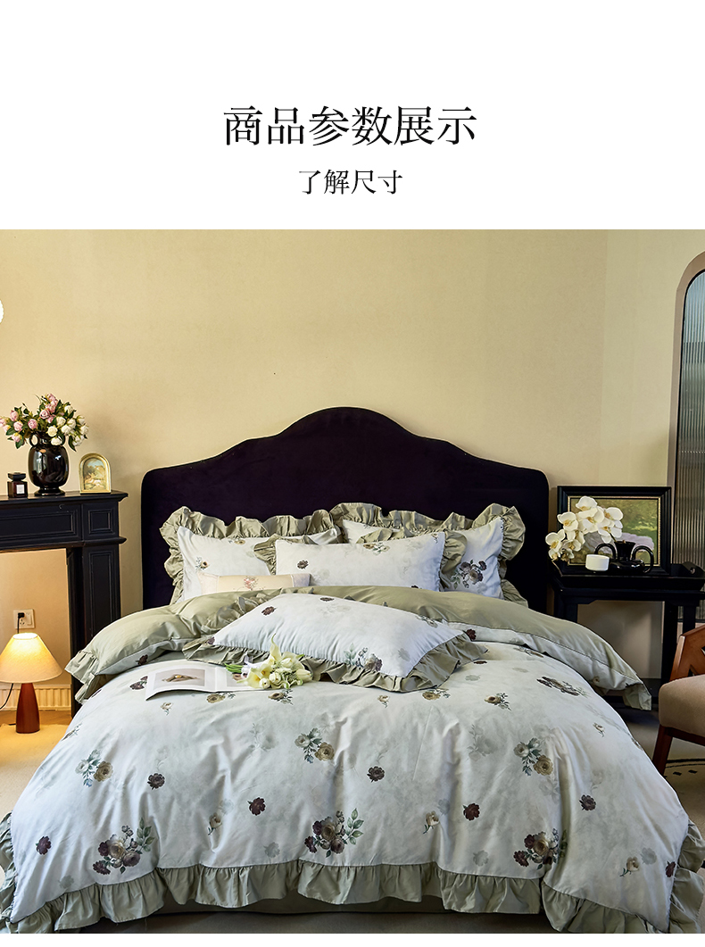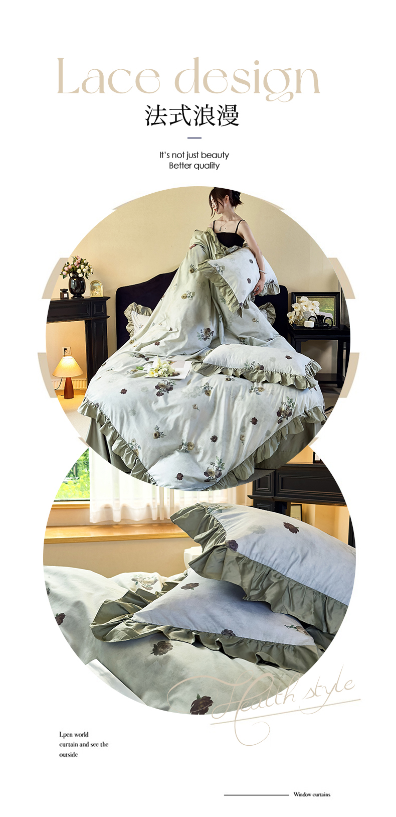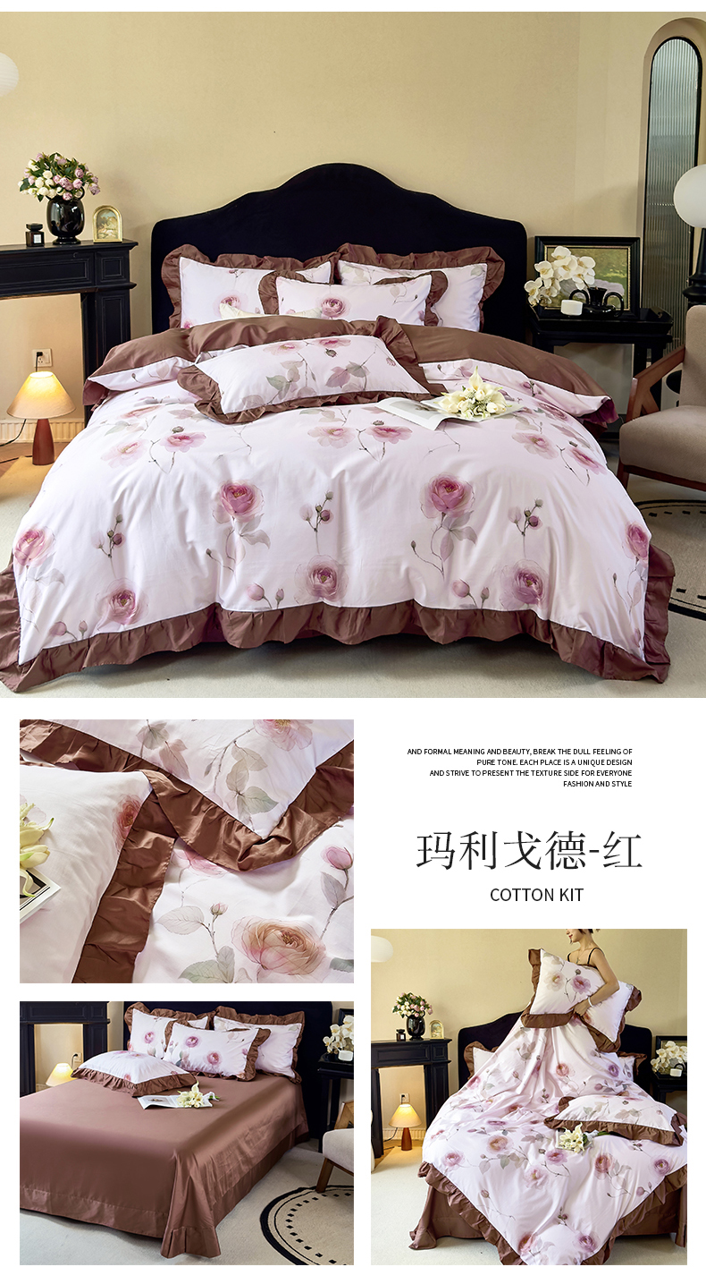 当前位置: 91家纺网 > 商品网购 > 床品套件 > 四件套 > 全棉普通四件套 > 未来家居 2025新款法式全棉贡缎花边款数码印花四件套 希贝尔