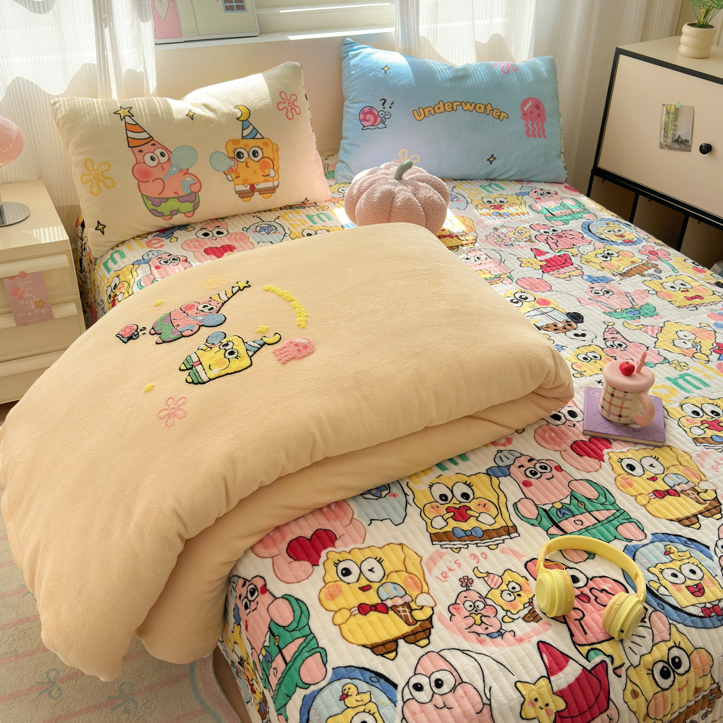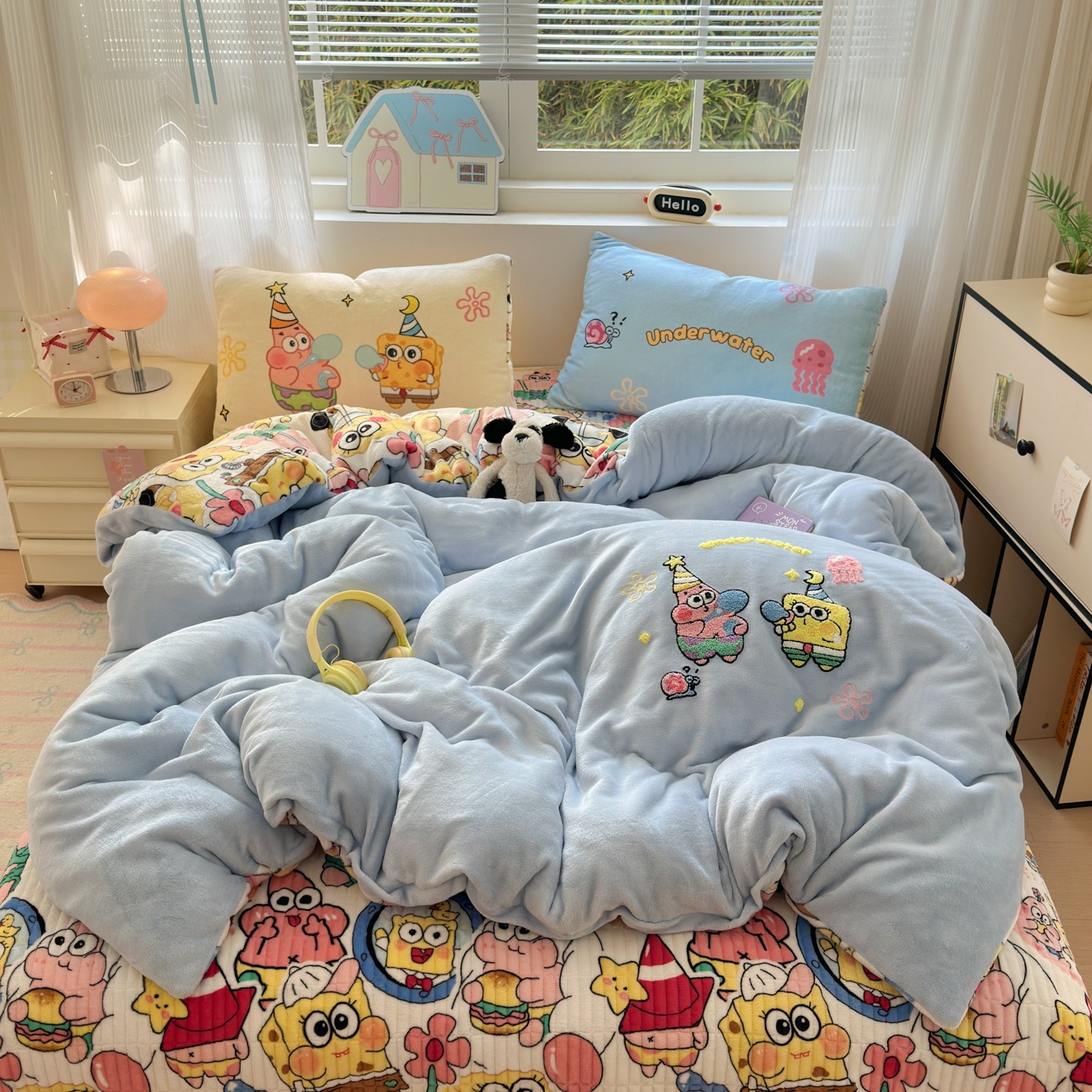 (总)一霖家纺 2025新款大版卡通牛奶绒四件套,搞怪新新紫,俏皮小新-黄,俏皮小新-蓝,甜心猫咪,星空小新