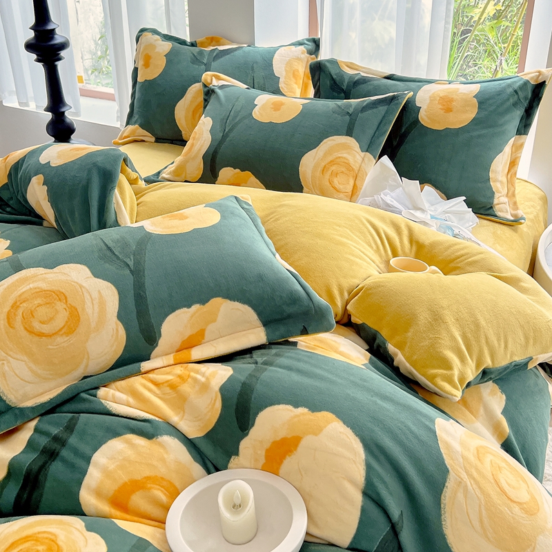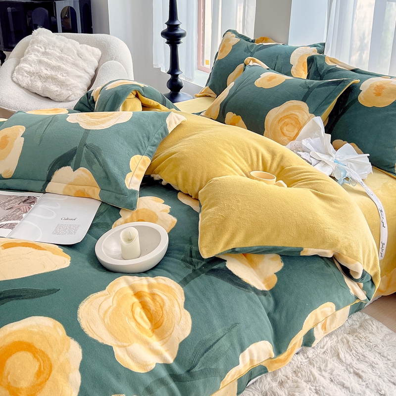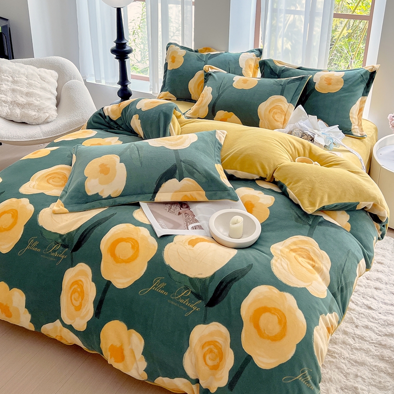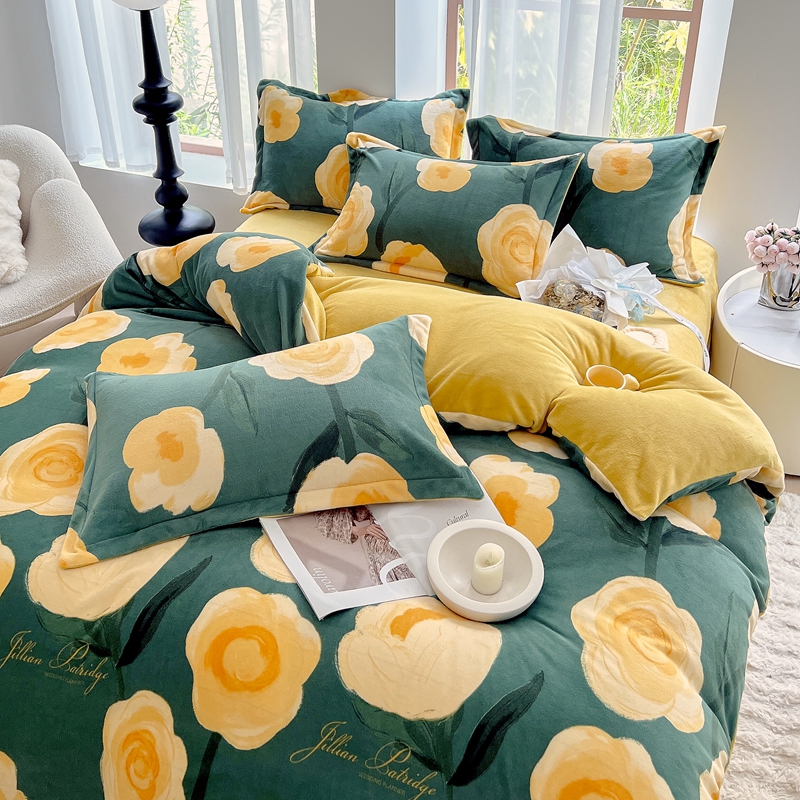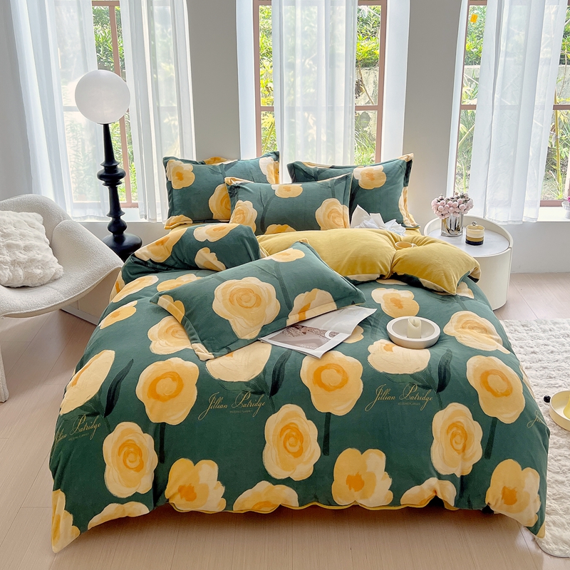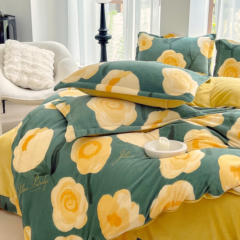 于果 2025新款牛奶绒印花四件套 花如梦-绿