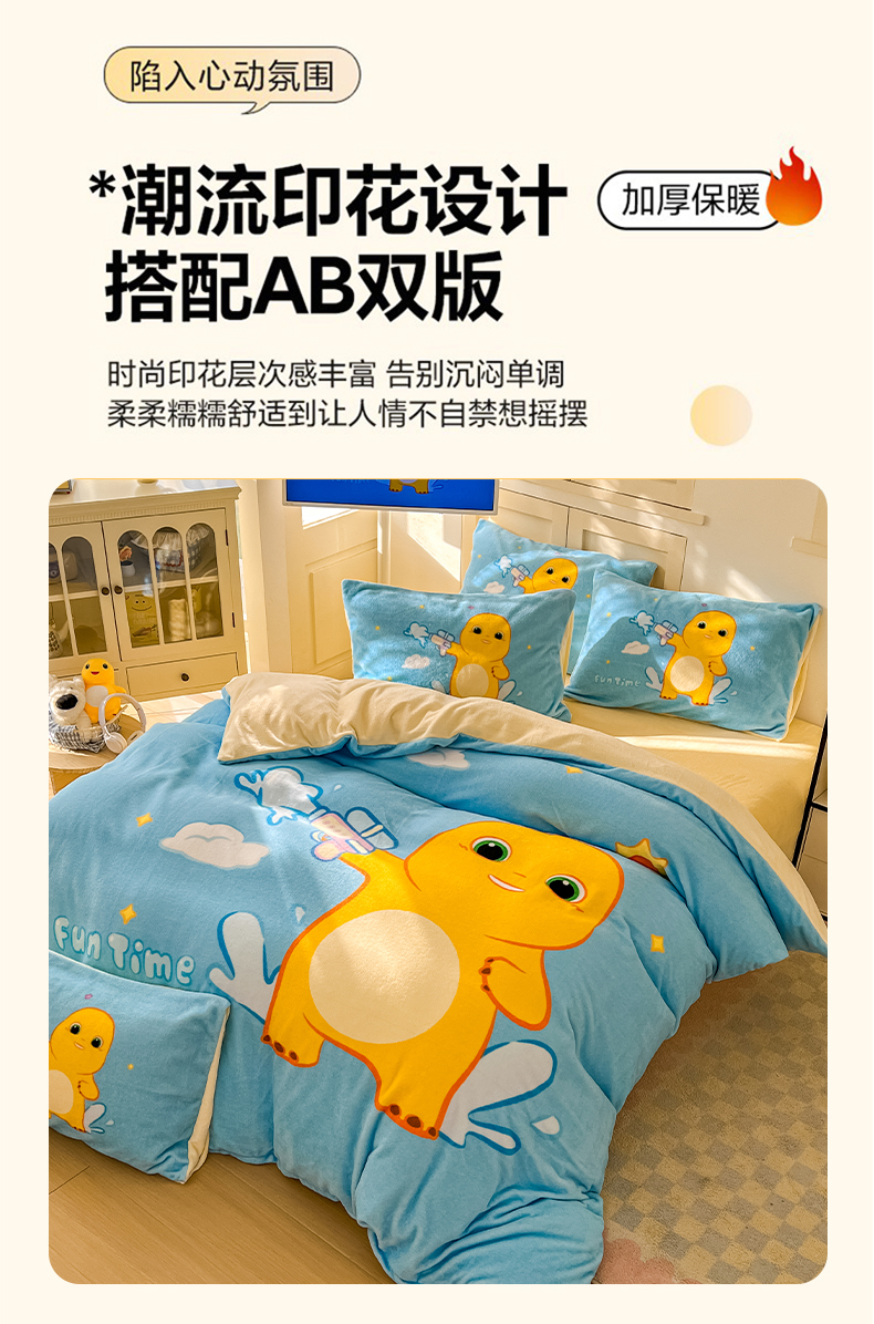 当前位置: 91家纺网 > 商品网购 > 床品套件 > 四件套 > 牛奶绒四件套 > 浩诚 2025秋冬新款高克重牛奶绒大版卡通四件套 快乐狂欢