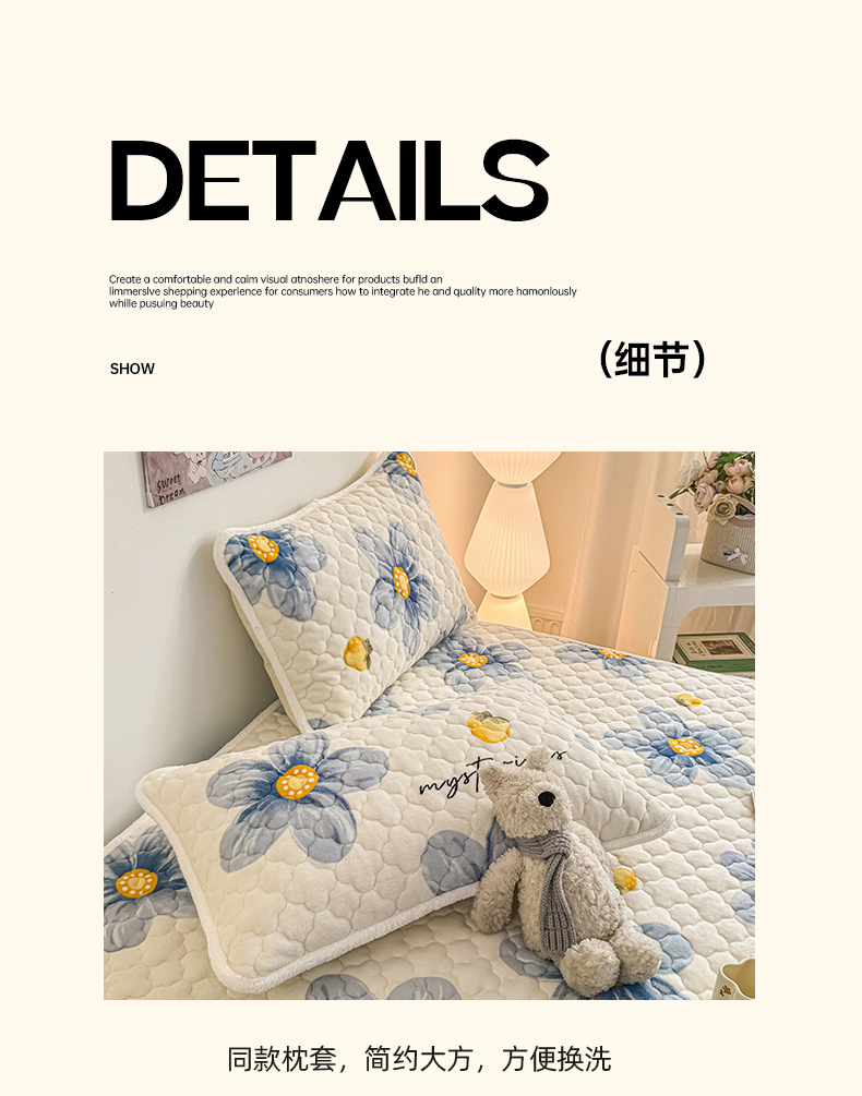 商品名称:小叮当家纺仓储工厂店 2025新款A类200g高克重牛奶绒印花夹棉床笠单品床笠床笠单件(提供买家秀) 绿色心情