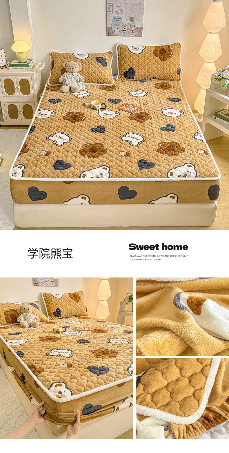 小叮当家纺仓储工厂店 2025新款A类200g高克重牛奶绒印花夹棉床笠单品床笠床笠单件(提供买家秀) 绿色心情