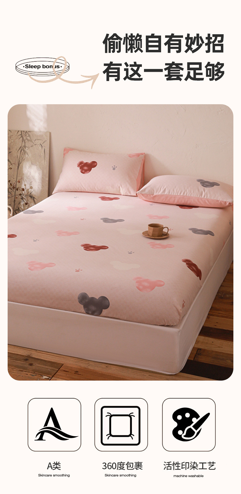 商品名称:小叮当家纺仓储工厂店 (买家秀 爆款花型 不断货)2025新款良品磨毛单床笠床笠单件 粉熊宝贝