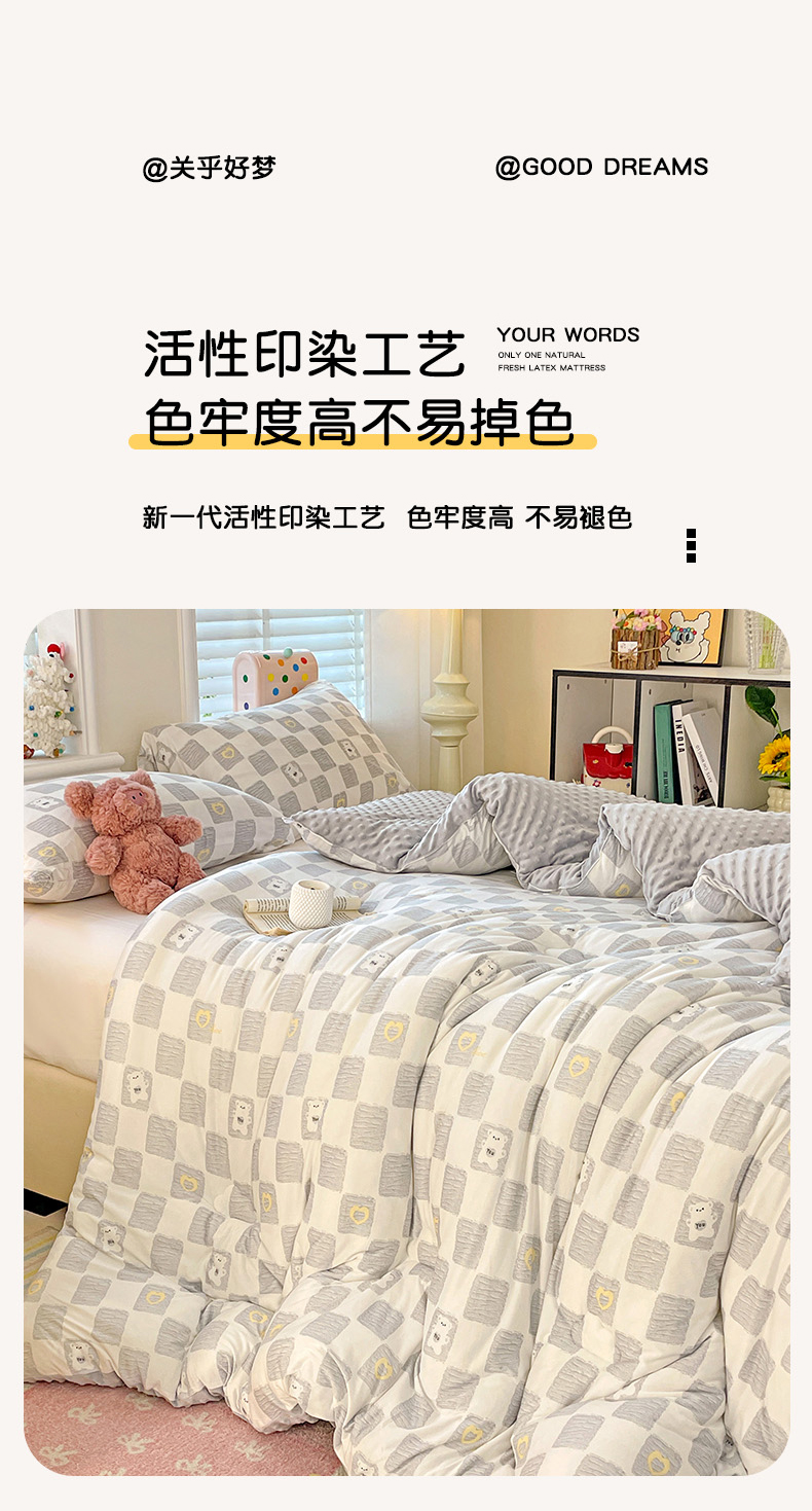 • 91家纺网 家纺一手货源 找家纺 小叮当家纺仓储工厂店 2025新款A类母婴级宝宝被子牛奶丝针织棉豆豆被豆豆被子儿童婴童大豆被精品买家秀 方格熊