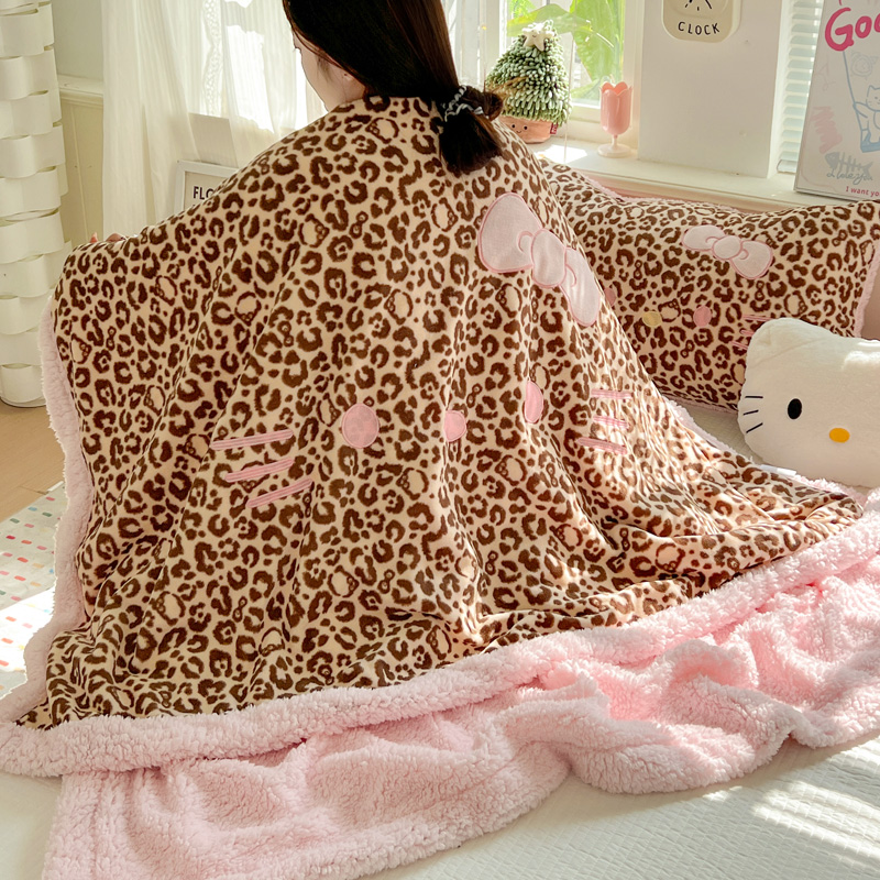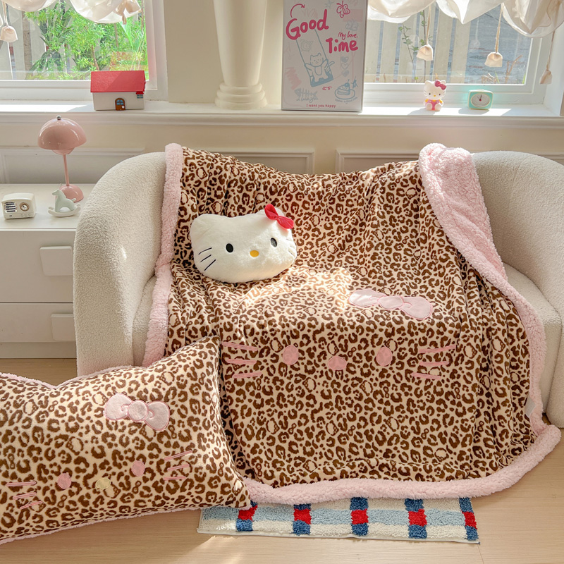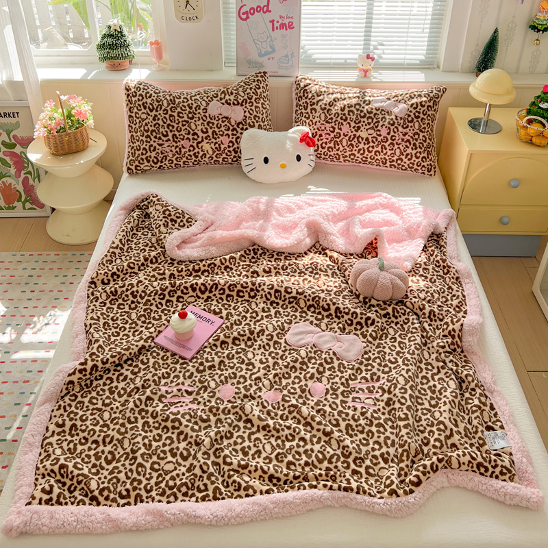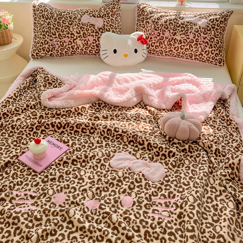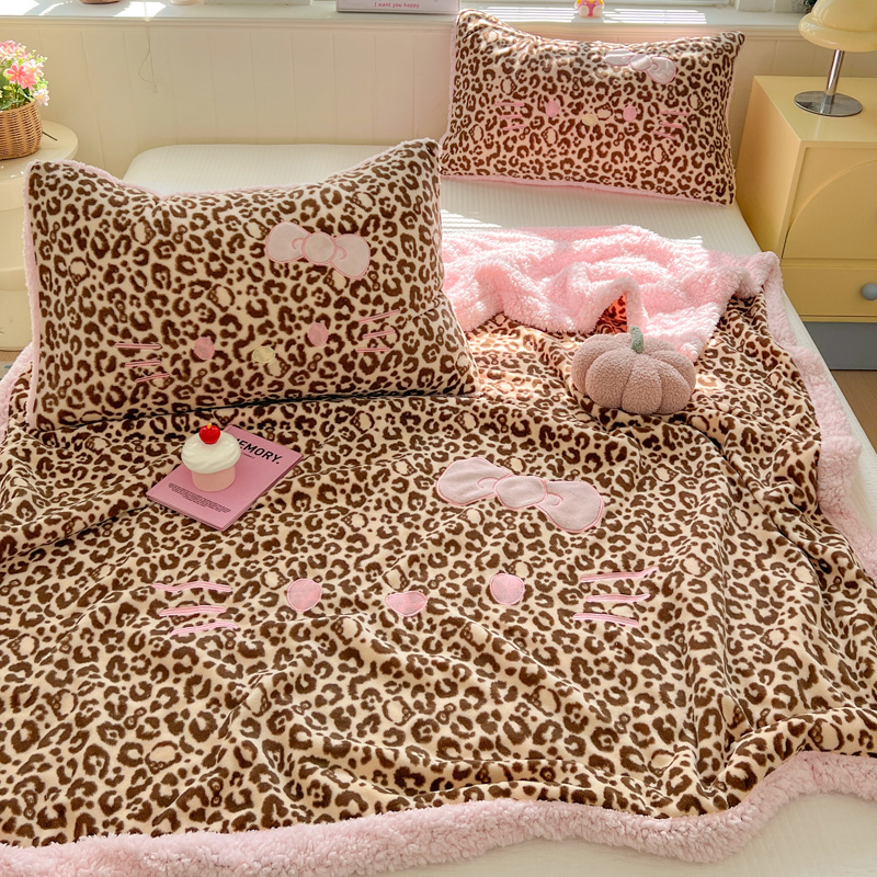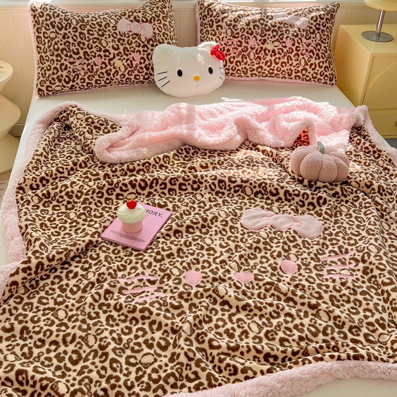 商品名称:繁花家居 2025新款羊羔绒牛奶绒绣花喵喵系列毛毯 表情喵-豹纹