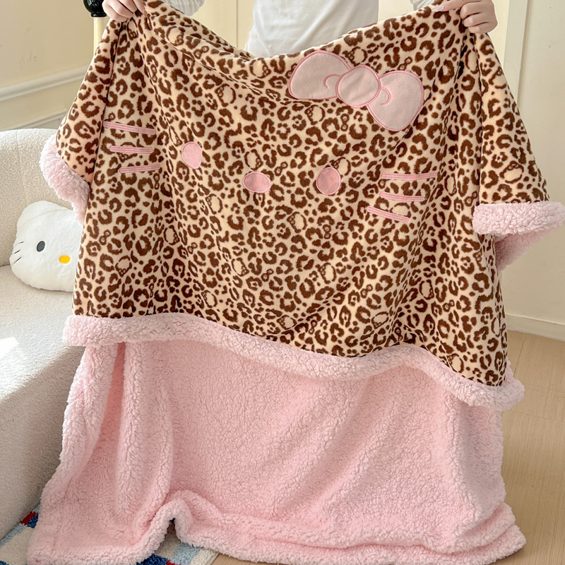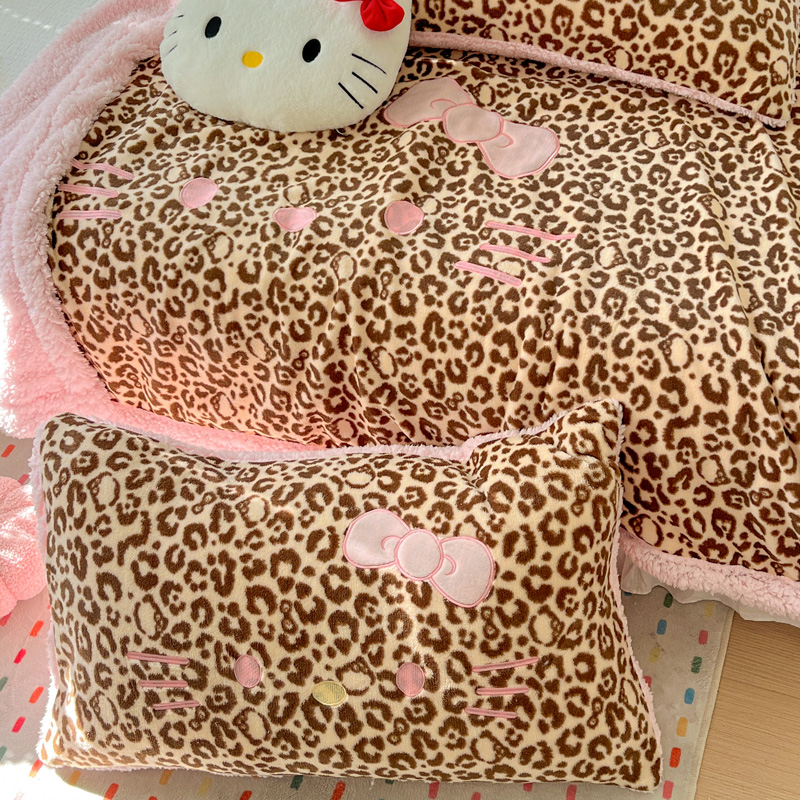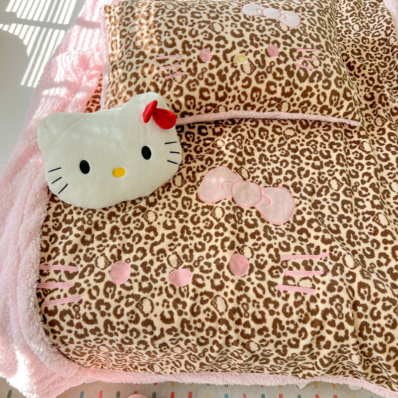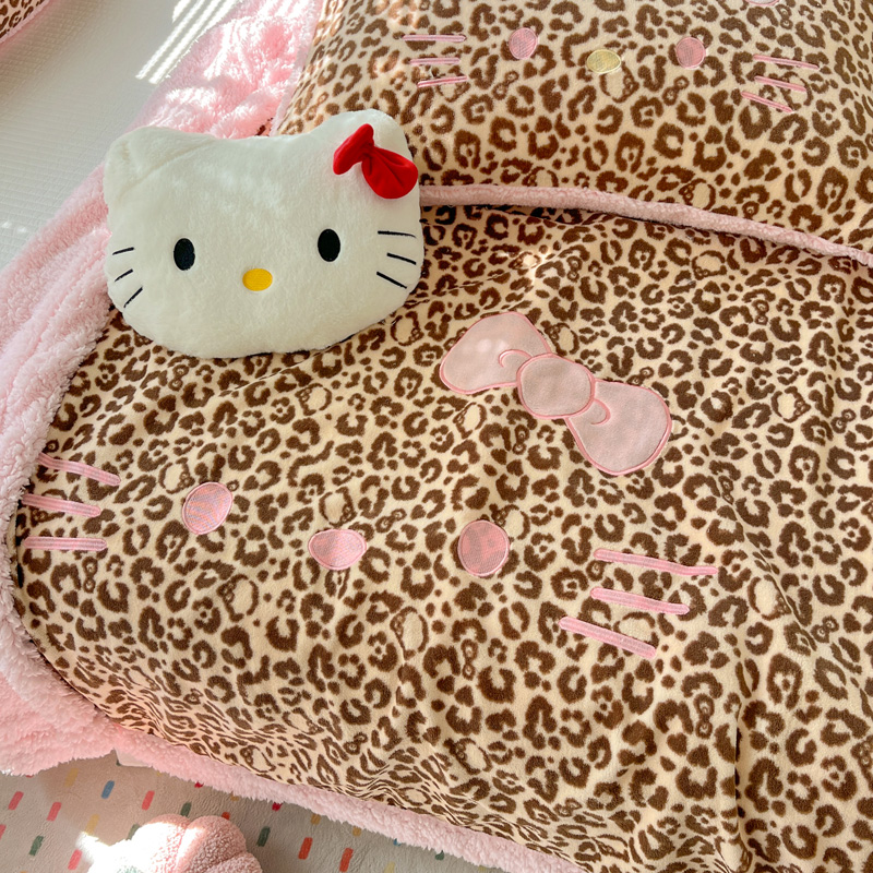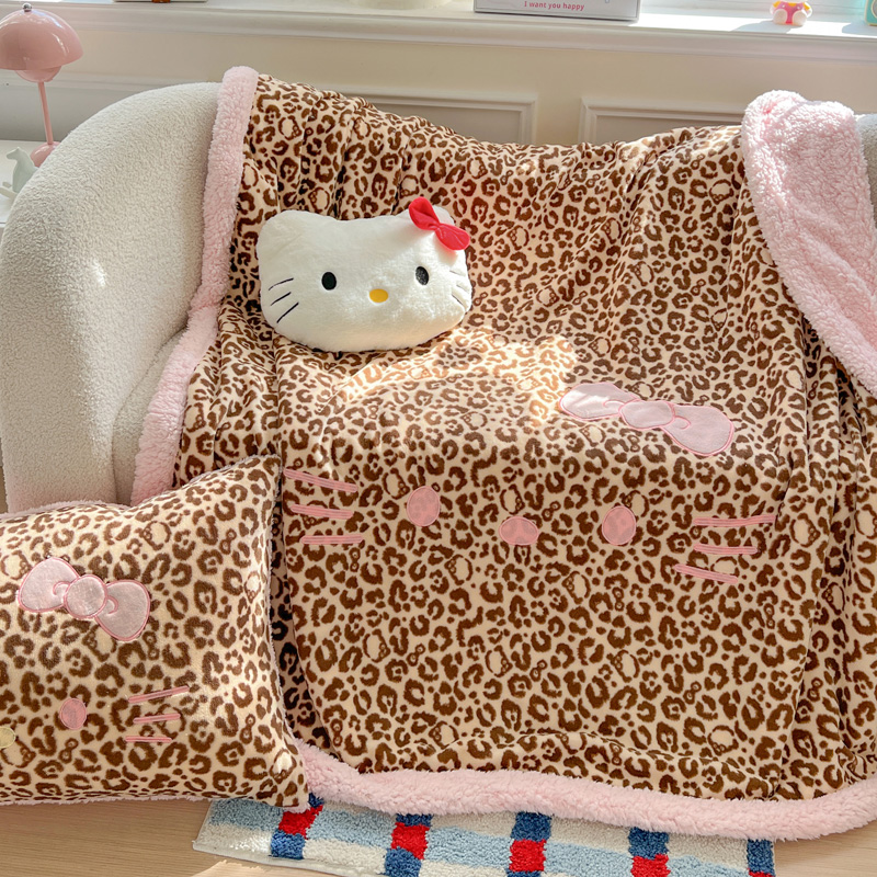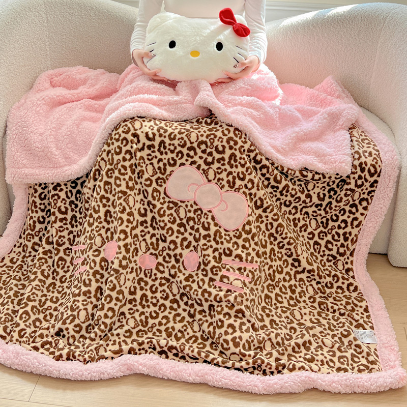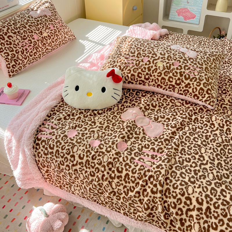 商品名称:繁花家居 2025新款羊羔绒牛奶绒绣花喵喵系列毛毯 表情喵-豹纹