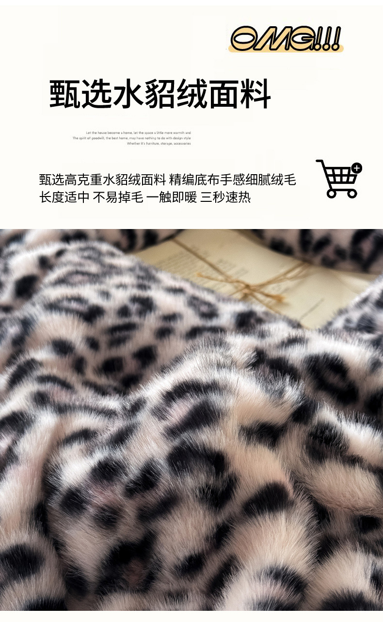 (总)九花鹿 2025新款丹麦皮草绒水貂绒盖毯毛毯毯子-豹纹,豹纹粉,豹纹灰,豹纹咖