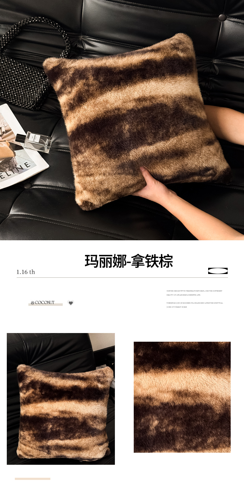 商品名称:九花鹿 2025新款轻奢水貂绒印花抱枕套 玛丽娜-拿铁棕