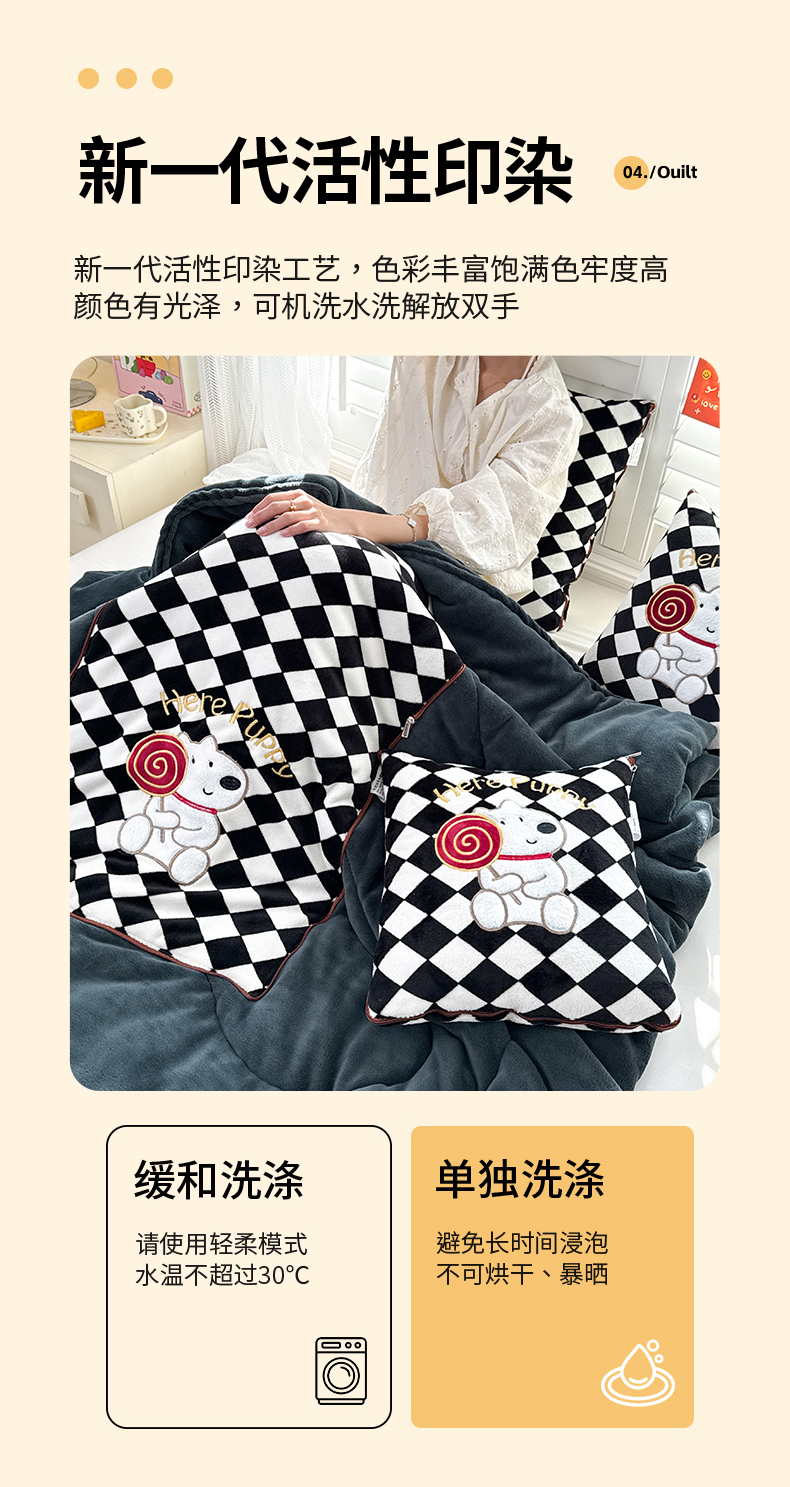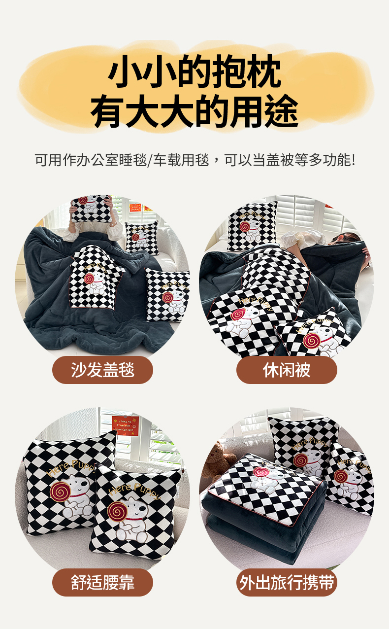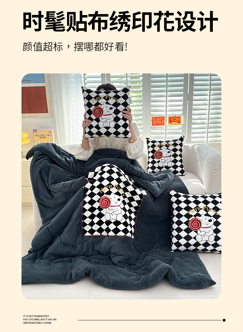 商品名称:(总)宝马家纺(原梦童画) 2025新款多巴胺风格牛奶绒贴布绣抱枕被