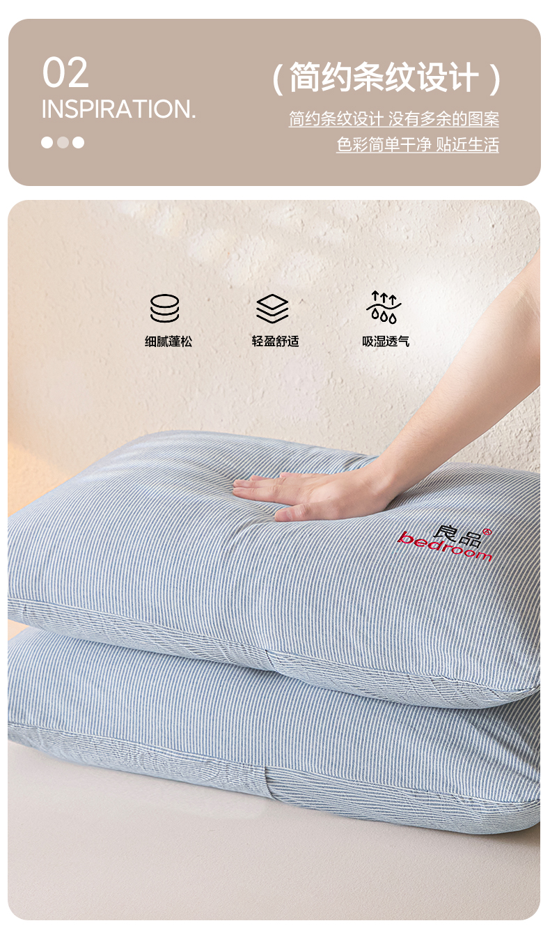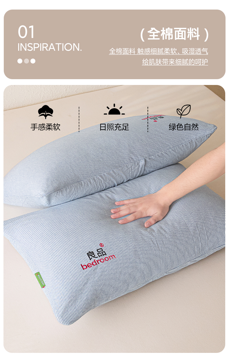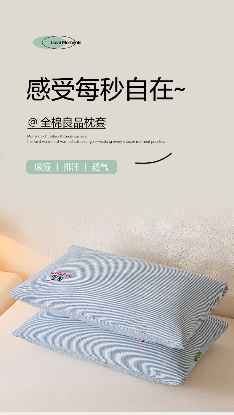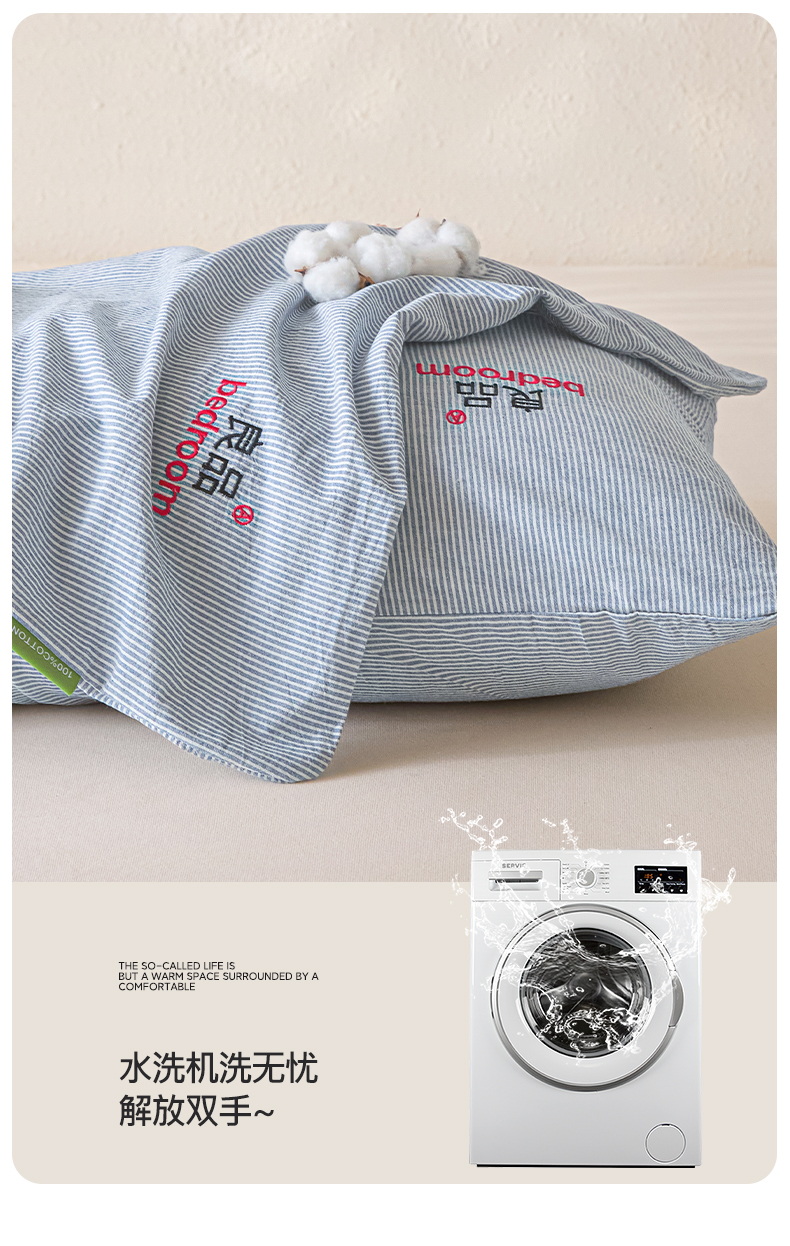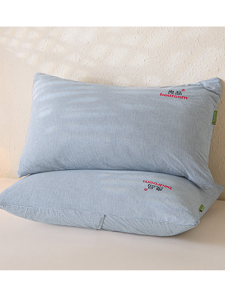 商品名称:芬晴家纺 2026新款条纹纯色良品刺绣枕套 条纹-牛仔蓝