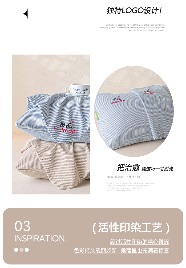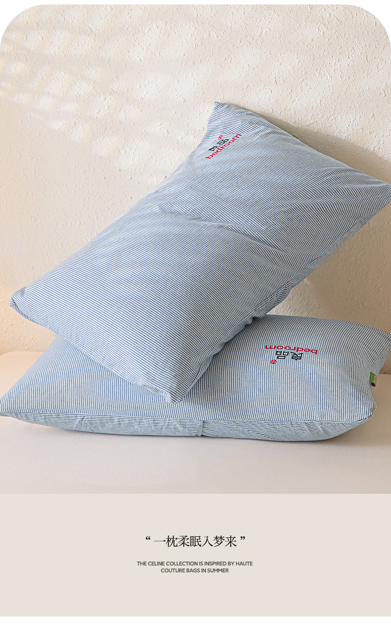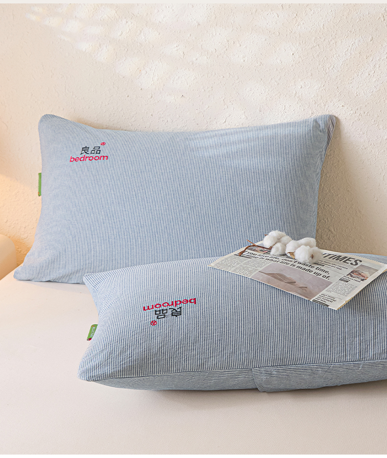 芬晴家纺 2026新款条纹纯色良品刺绣枕套 条纹-牛仔蓝