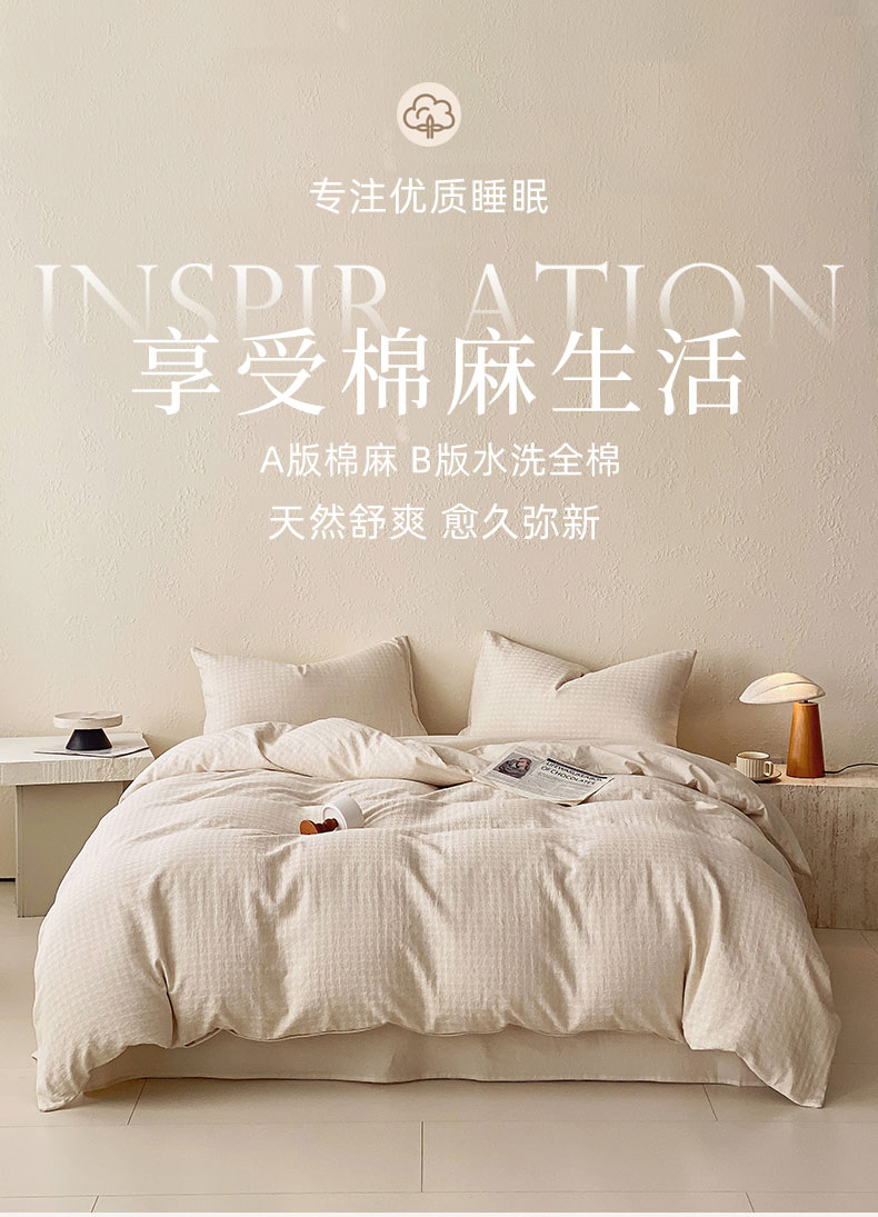 (总)琪格格纺织 2026新款A类无染本色棉麻纯棉水洗棉四件套,棉麻-安瑞雅,棉麻-米莱,棉麻-星光