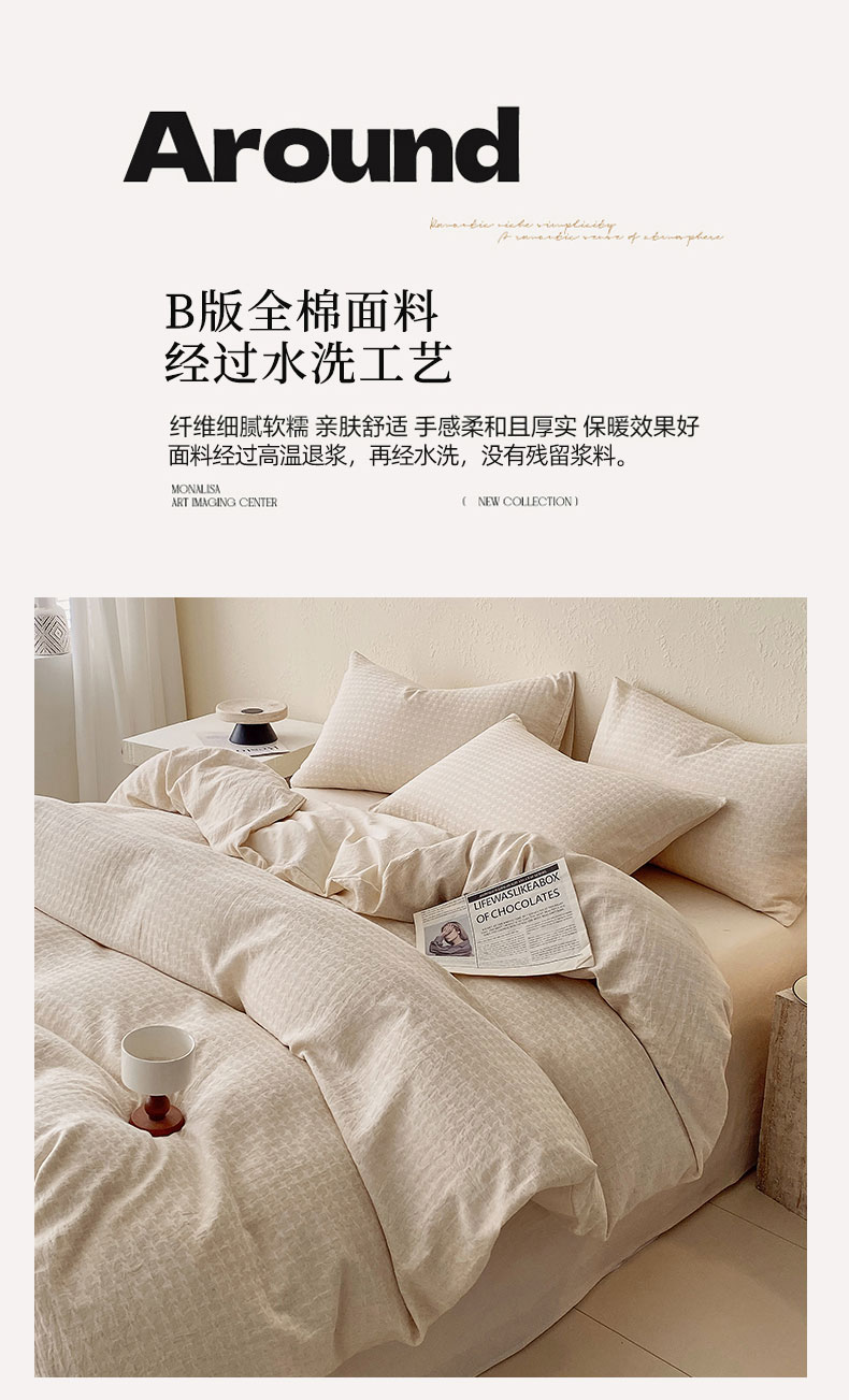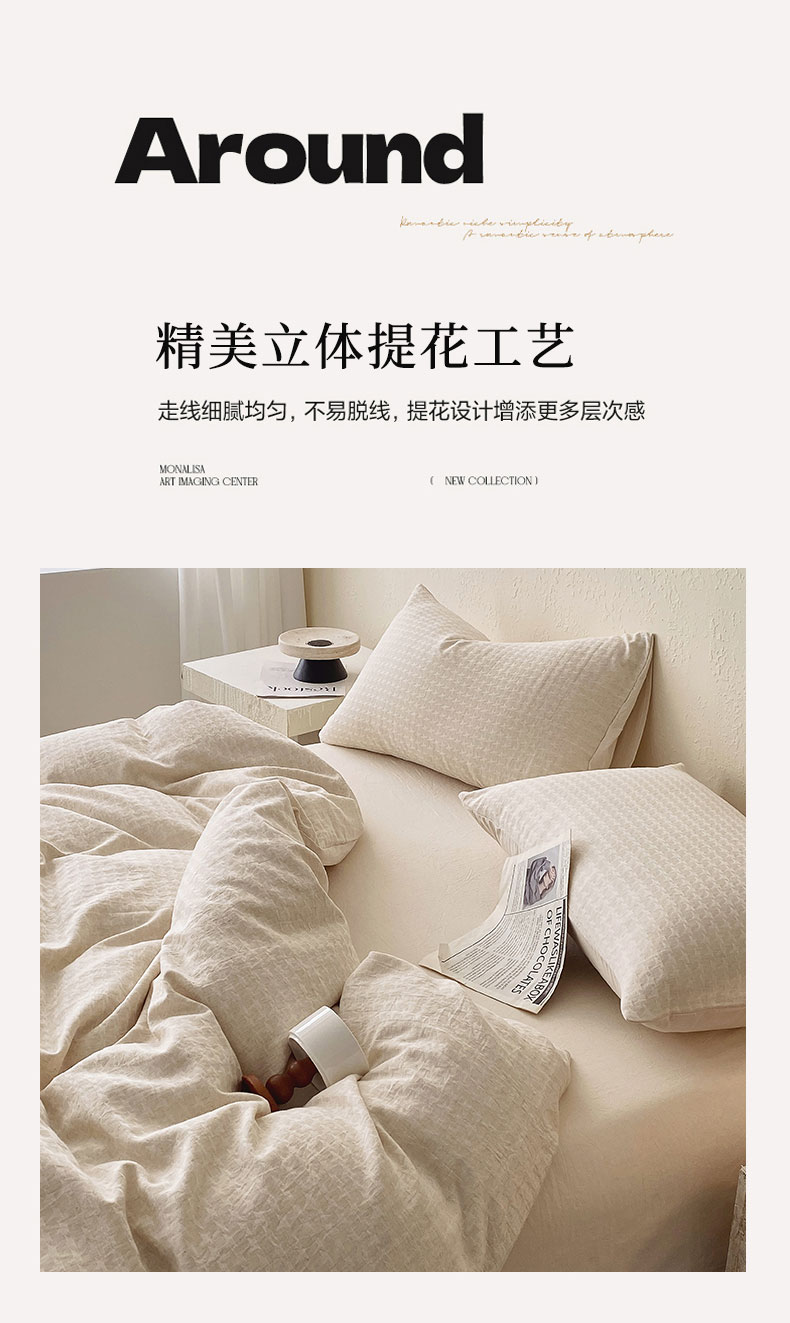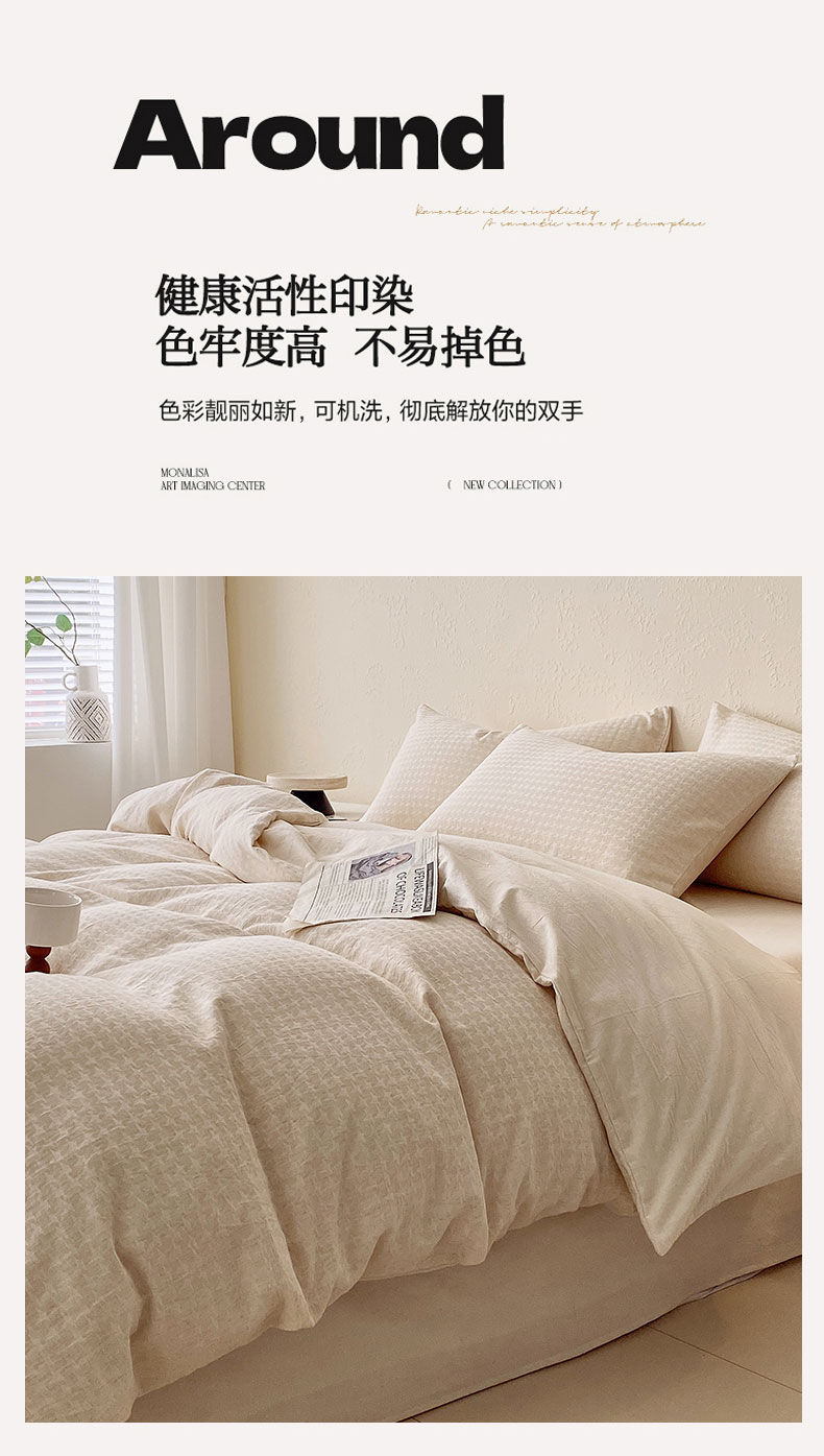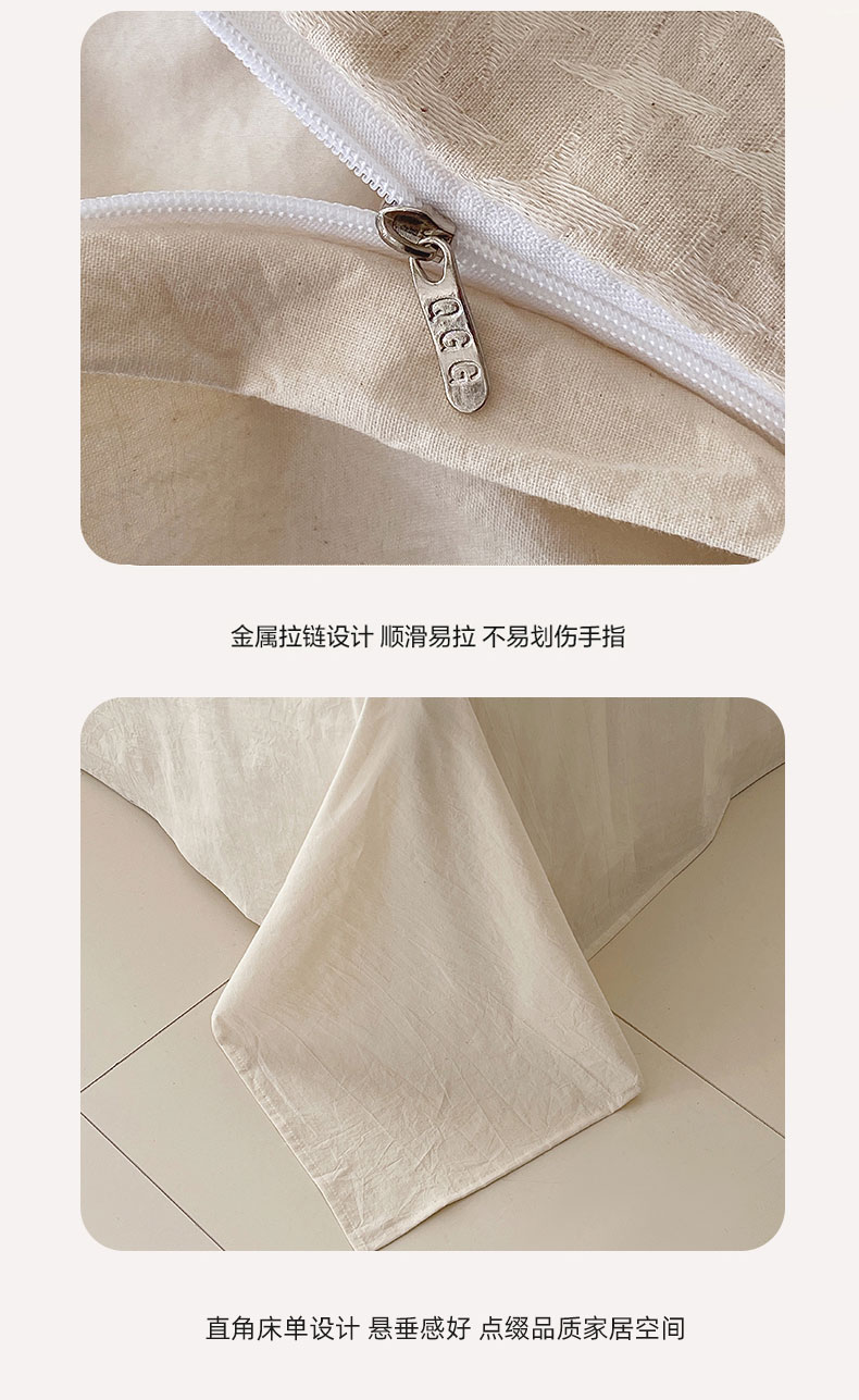 商品名称:琪格格纺织 2026新款A类无染本色棉麻纯棉水洗棉四件套 棉麻-星光