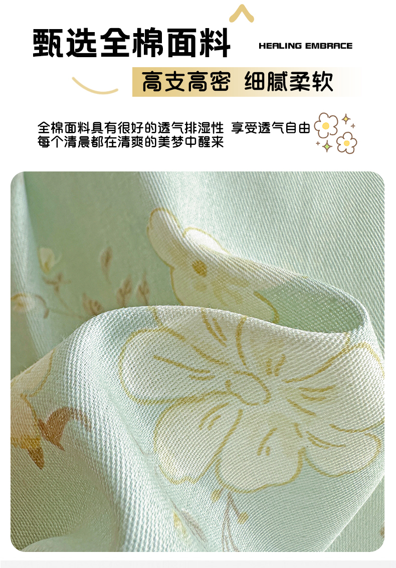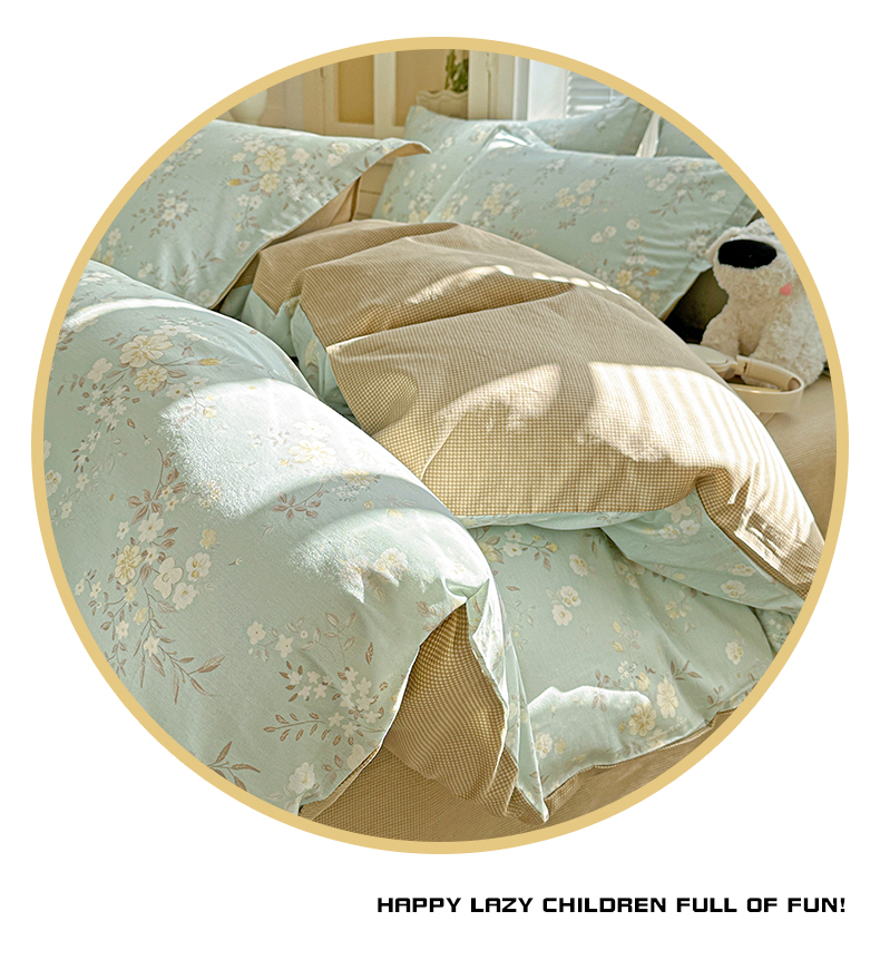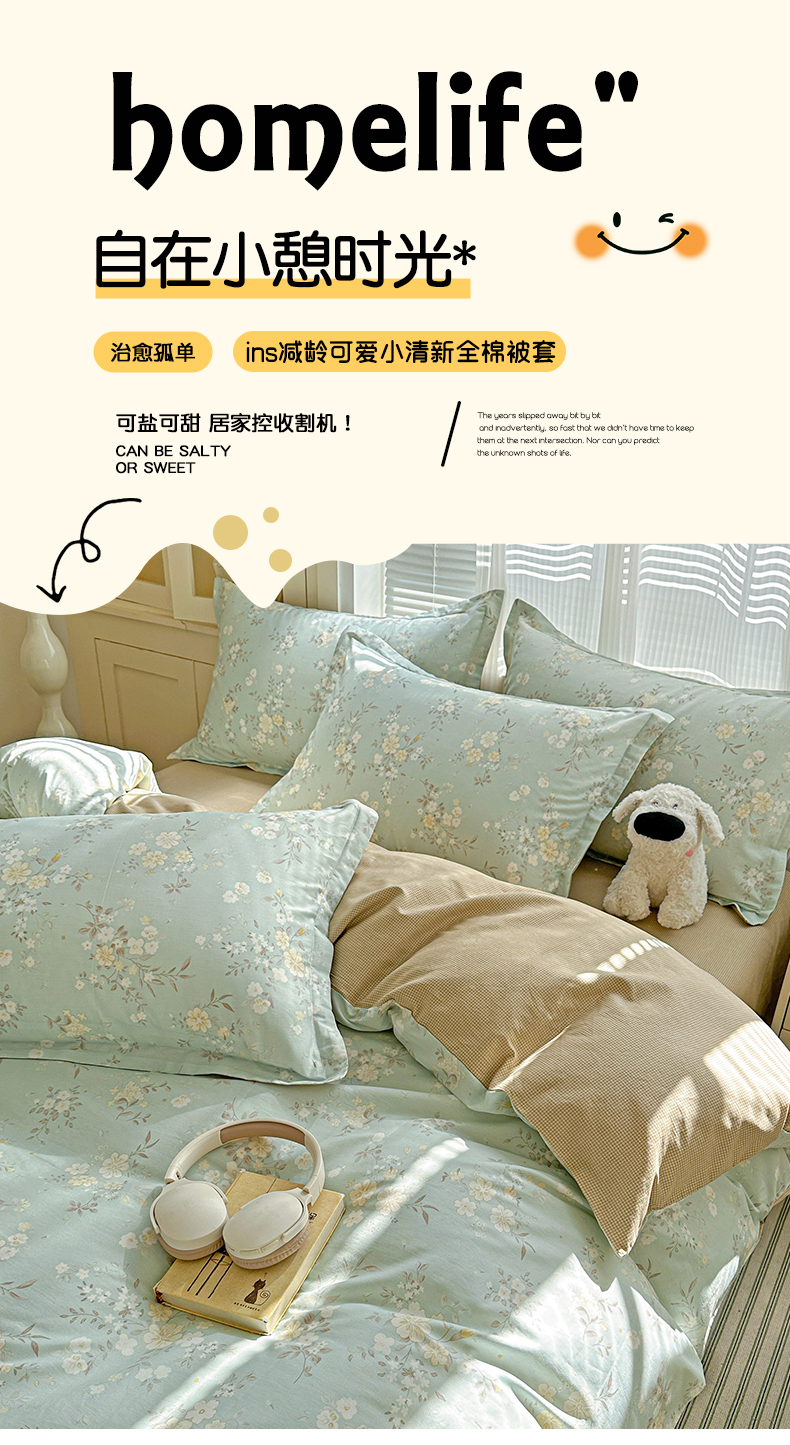• 91家纺网 家纺一手货源 找家纺 春雨家居 2026新款全棉印花ins减龄可爱小清新单被套 苏林-绿
