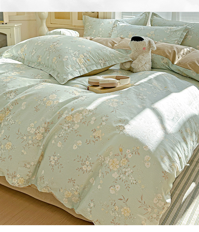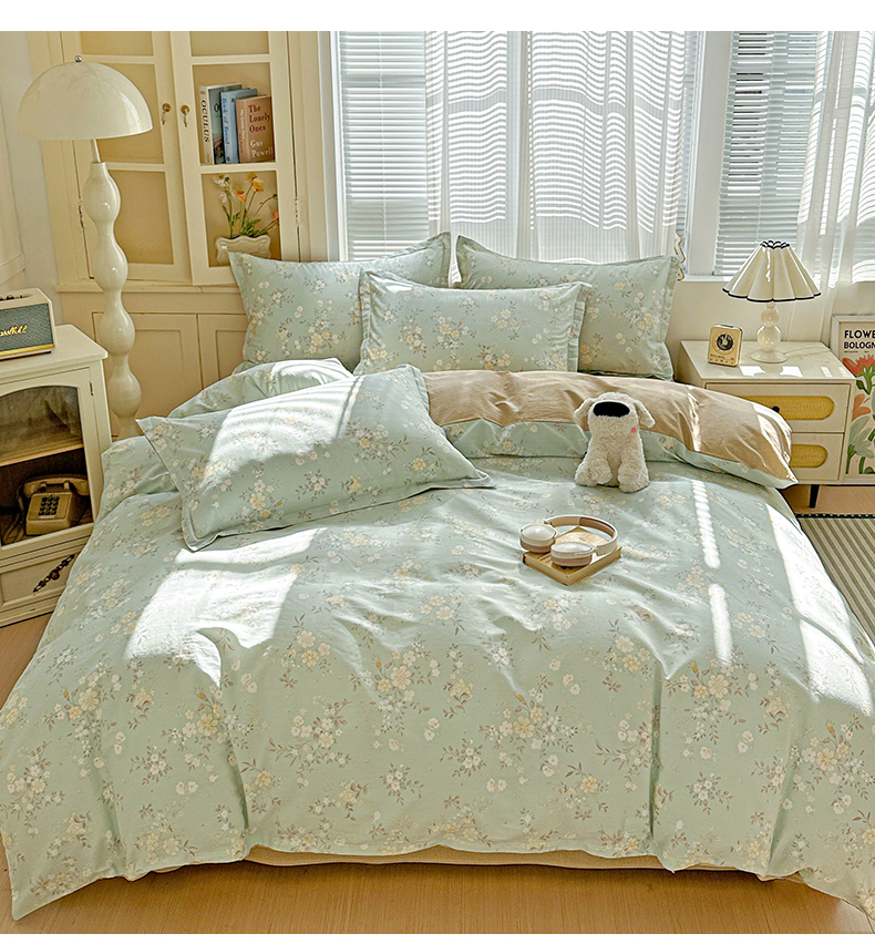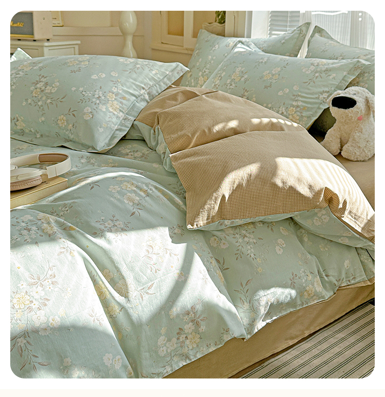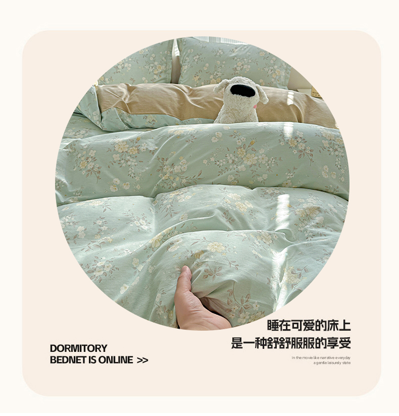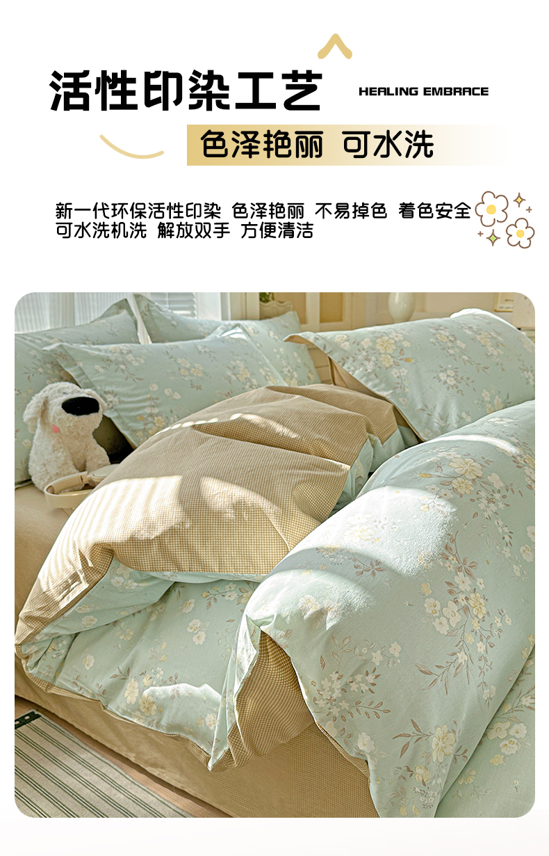 • 91家纺网 家纺一手货源 找家纺 春雨家居 2026新款全棉印花ins减龄可爱小清新单被套 苏林-绿