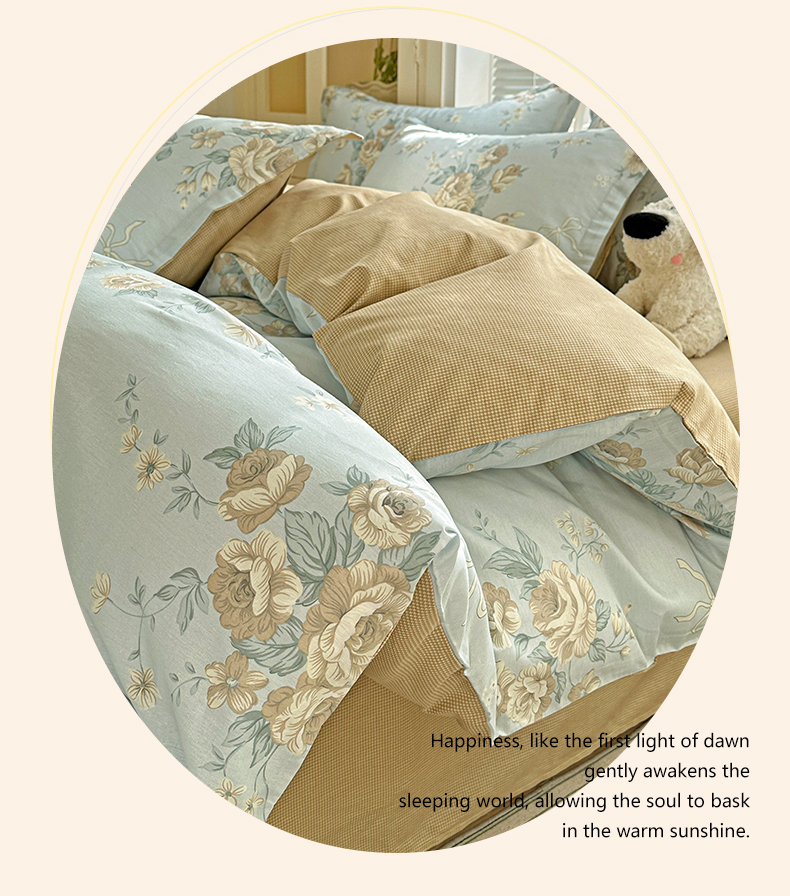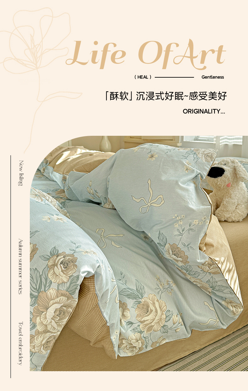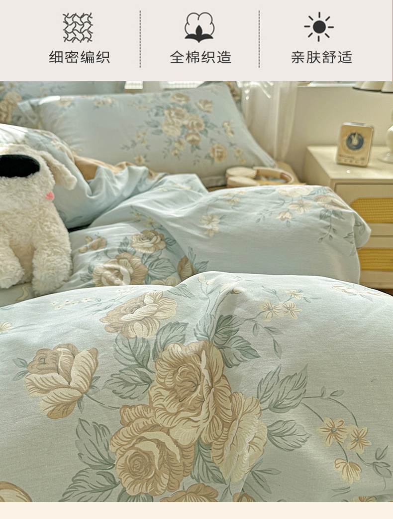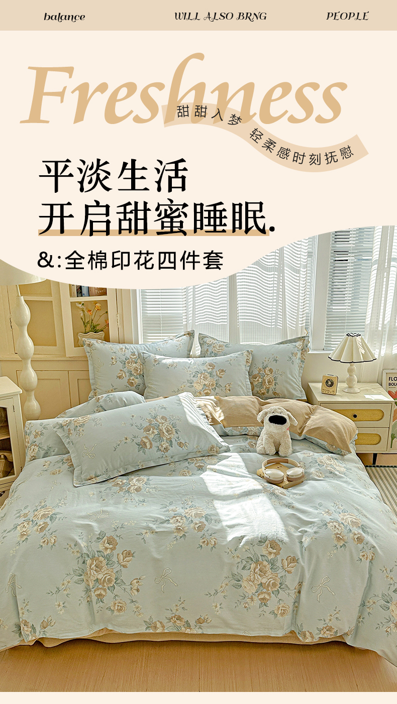 (总)春雨家居 2026新款全棉纯棉花ins减龄可爱小清新四件套(提供买家秀、质检报告、有预留缩水))