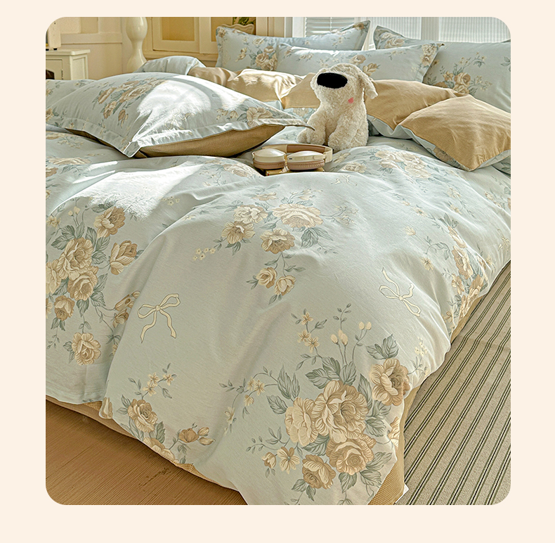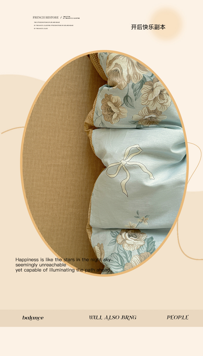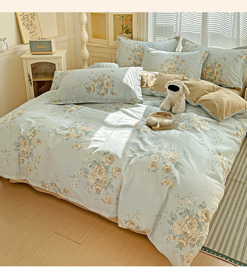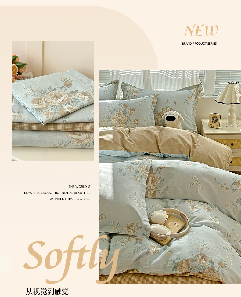 (总)春雨家居 2026新款全棉纯棉花ins减龄可爱小清新四件套(提供买家秀、质检报告、有预留缩水))