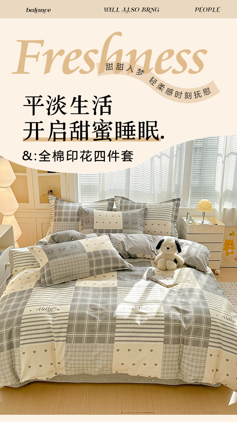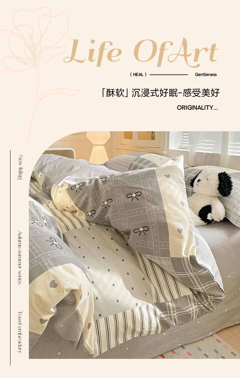 当前位置: 91家纺网 > 商品网购 > 床品套件 > 四件套 > 全棉普通四件套 > 春雨家居 2026新款全棉纯棉花ins减龄可爱小清新四件套 韩系拼图