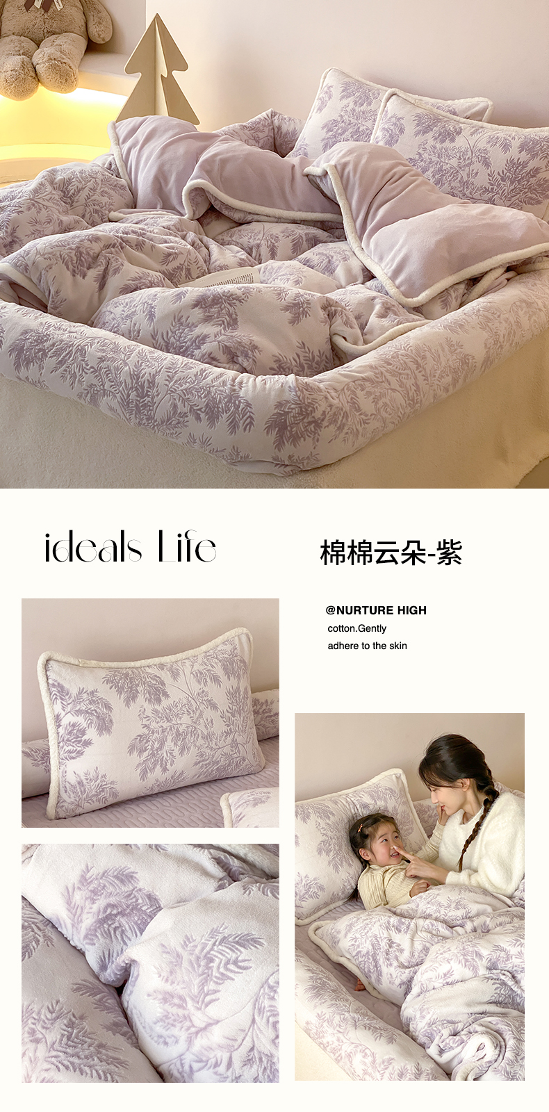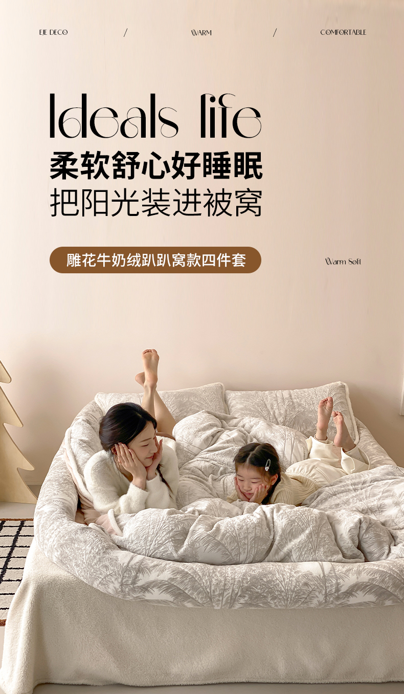 商品名称:(总)极简 2026新款人类趴趴窝牛奶绒可拆卸四件套-棉棉云朵(会员减20)