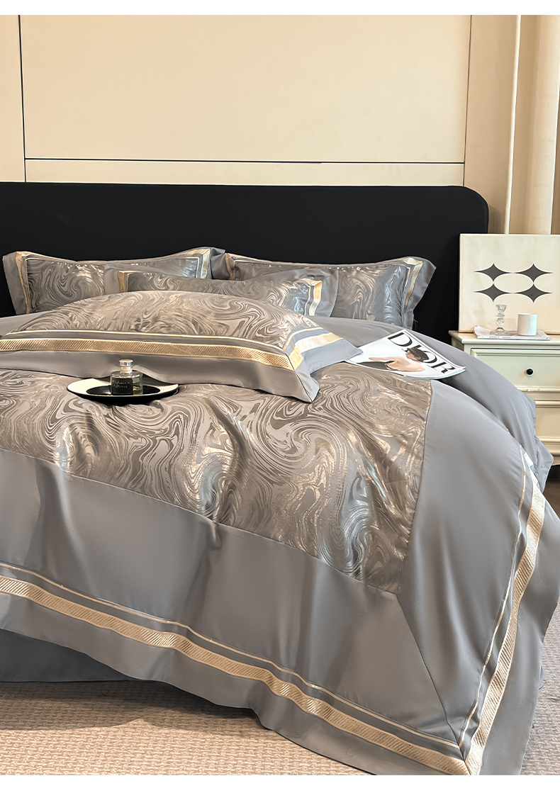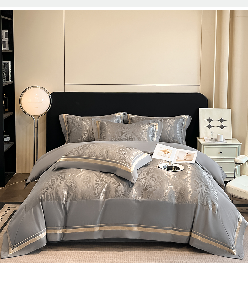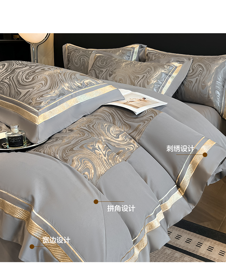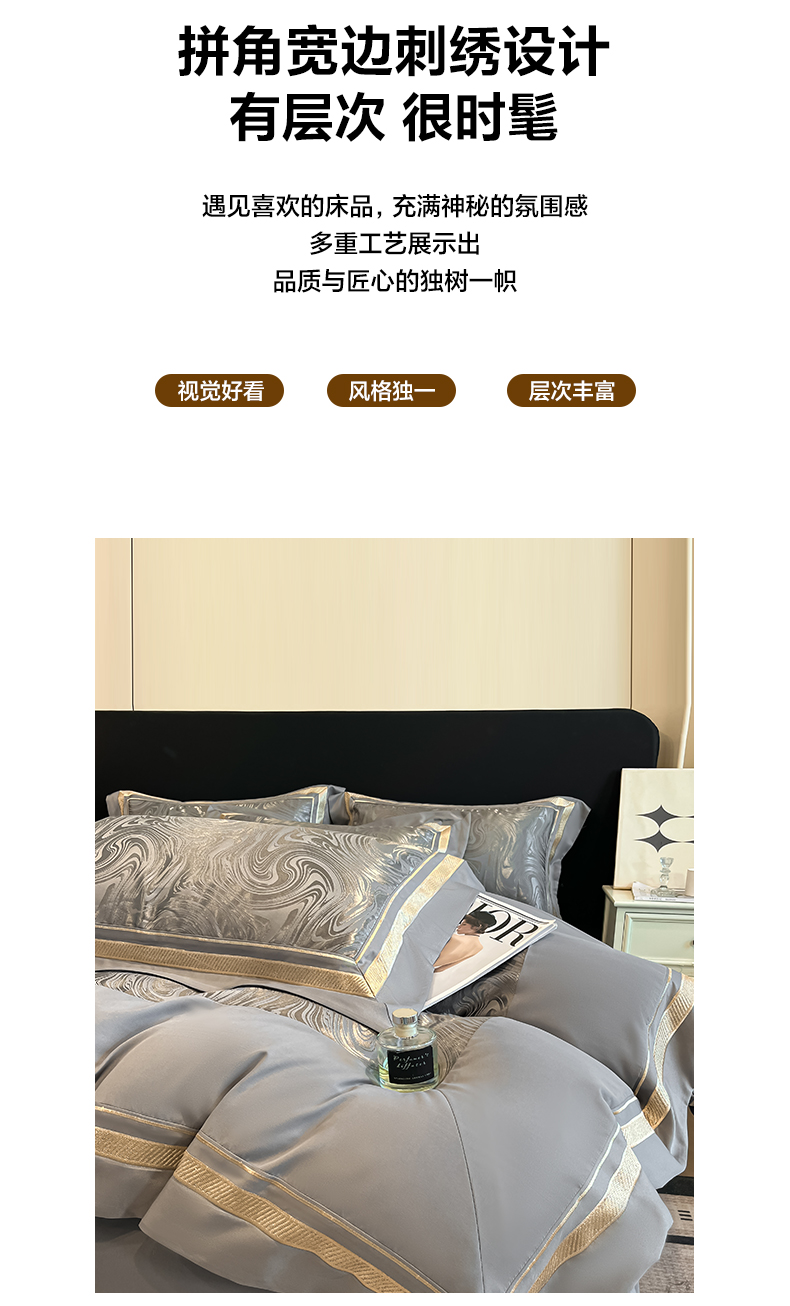 当前位置: 91家纺网 > 商品网购 > 床品套件 > 四件套 > 化纤普通四件套 > 博纳家纺 2026新款高端色织提花拼角绣花宽边亲肤棉四件套海韵系列 海韵-绅士灰