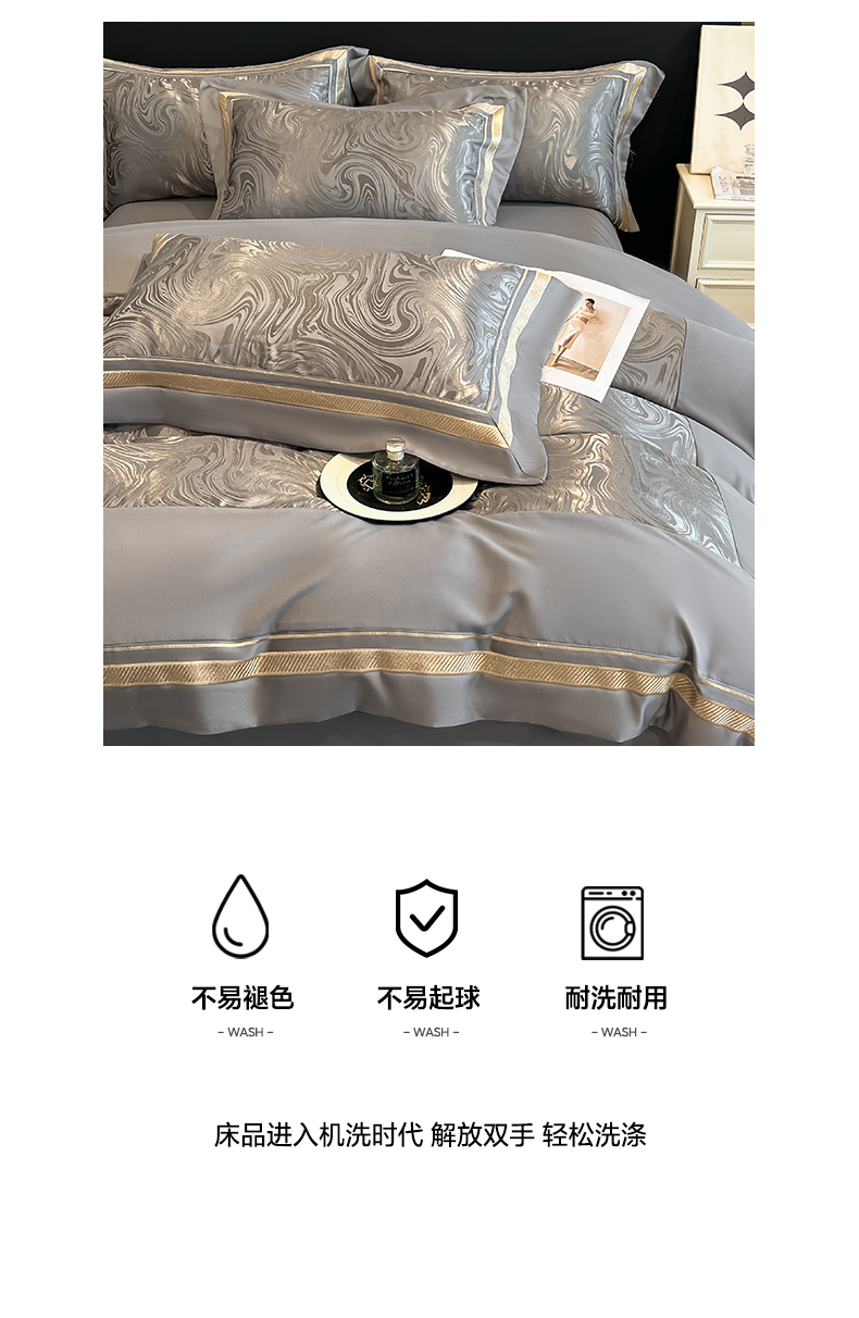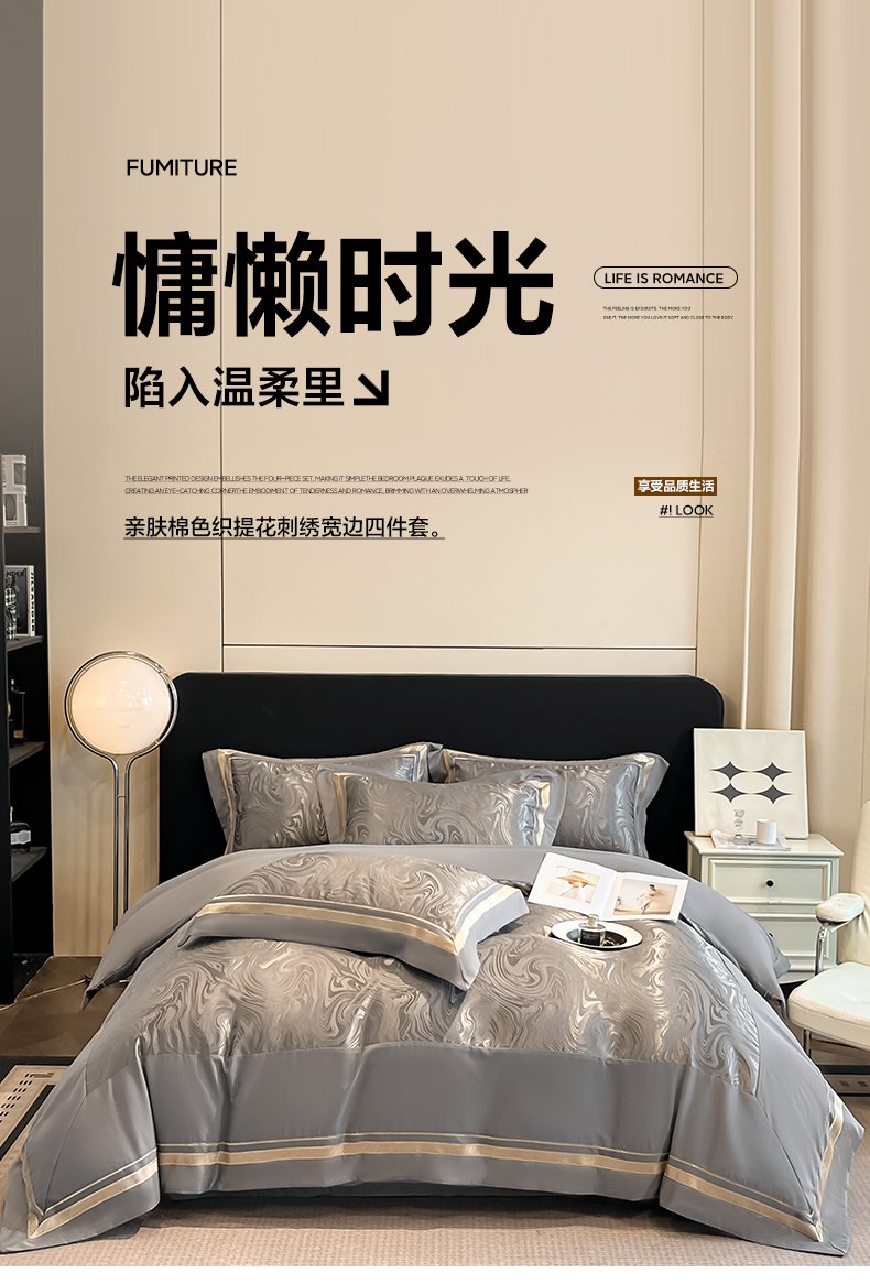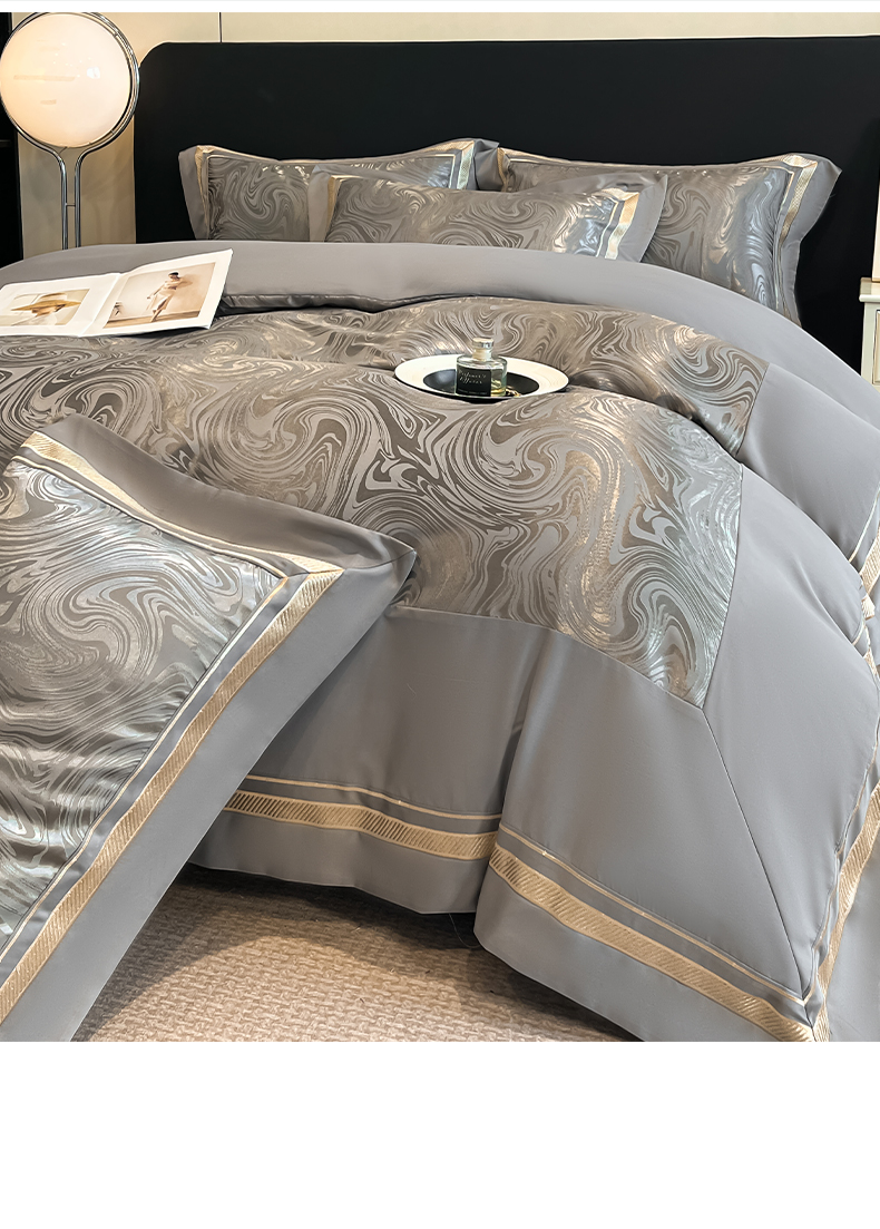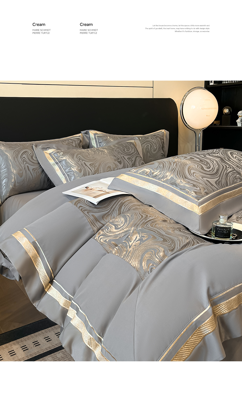 当前位置: 91家纺网 > 商品网购 > 床品套件 > 四件套 > 化纤普通四件套 > 博纳家纺 2026新款高端色织提花拼角绣花宽边亲肤棉四件套海韵系列 海韵-绅士灰