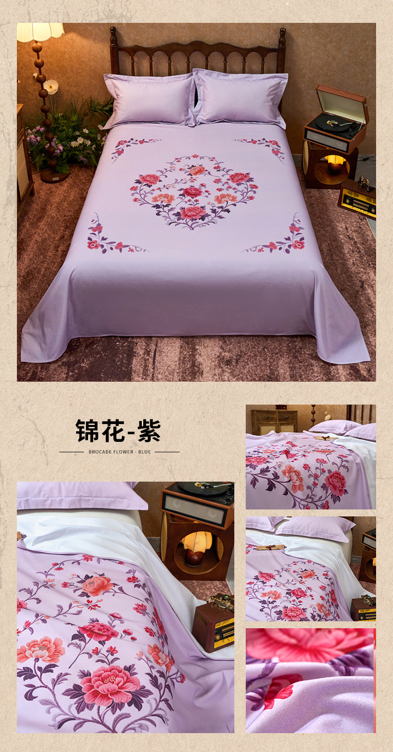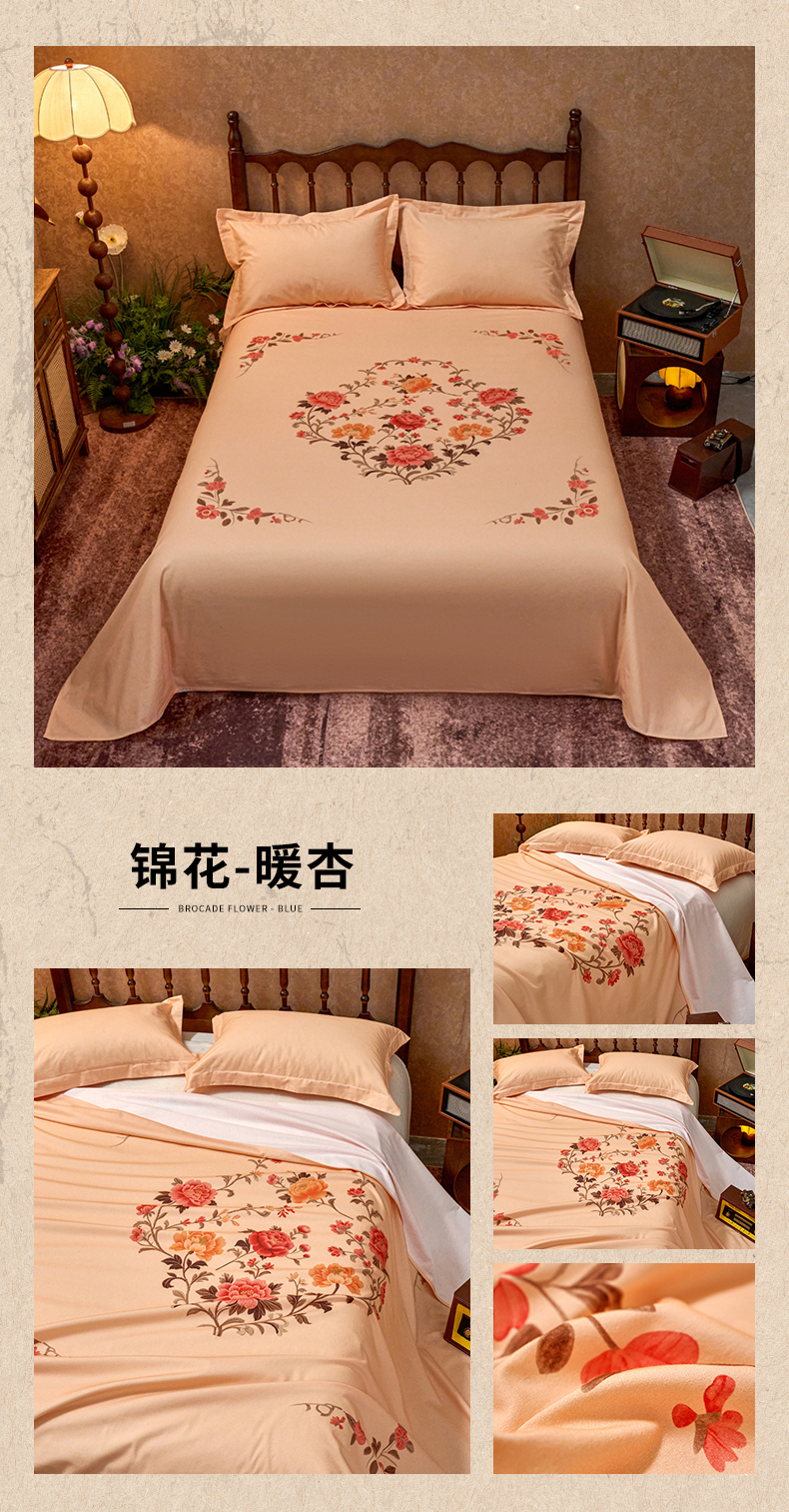 (总)春皖家纺 2026新款A类全棉有氧双层纱印花四件套单品系列-单床单,桂语兰庭,暮春,雾染玫瑰,晴丝一缕,青茵,花町,旧梦朝花,花织,雾色里德,雾棕