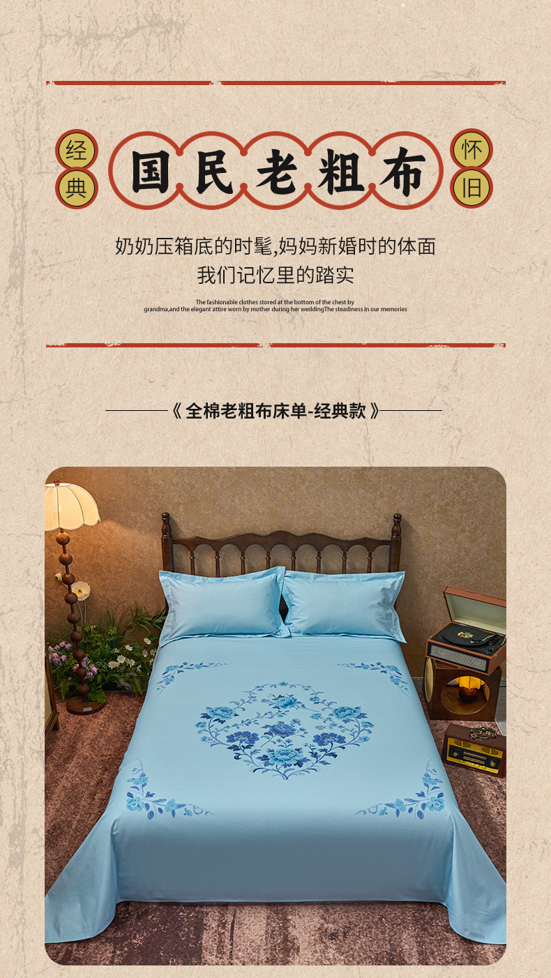 春皖家纺 2026新款老上海A类国民全棉老粗布床单怀旧经典粗布床单(提供买家秀) 锦花-蓝