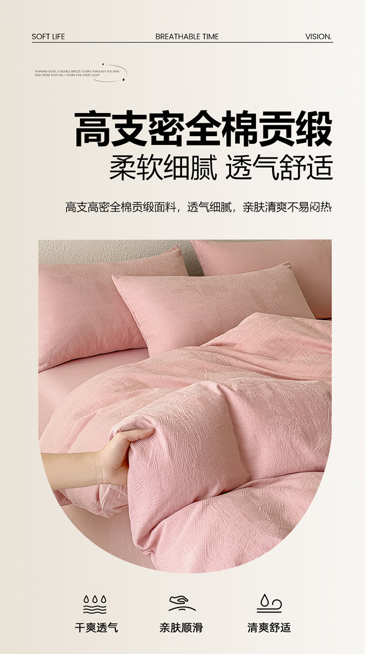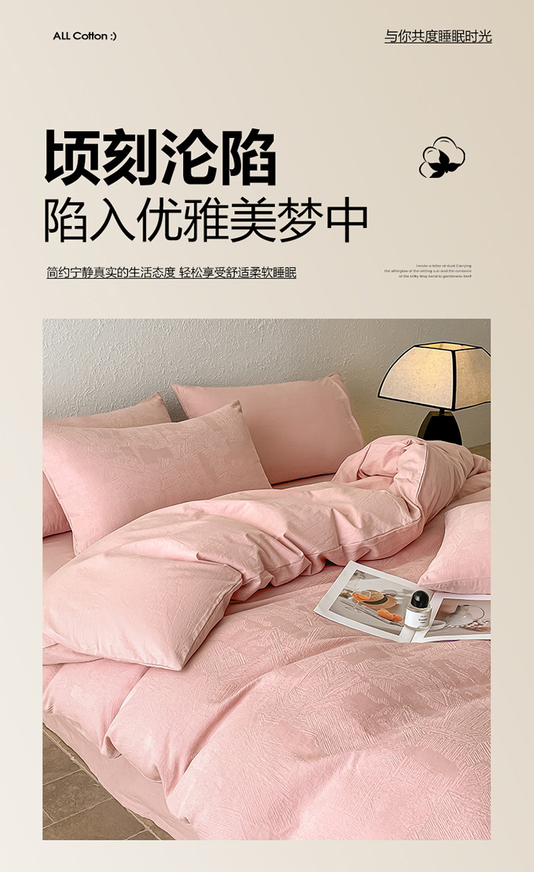 良品汇馆 2026【特价提花绣花四件套】A类提花四件套良品全棉床品件套纯色纯棉高端绣花四件套 繁星-蔷薇粉