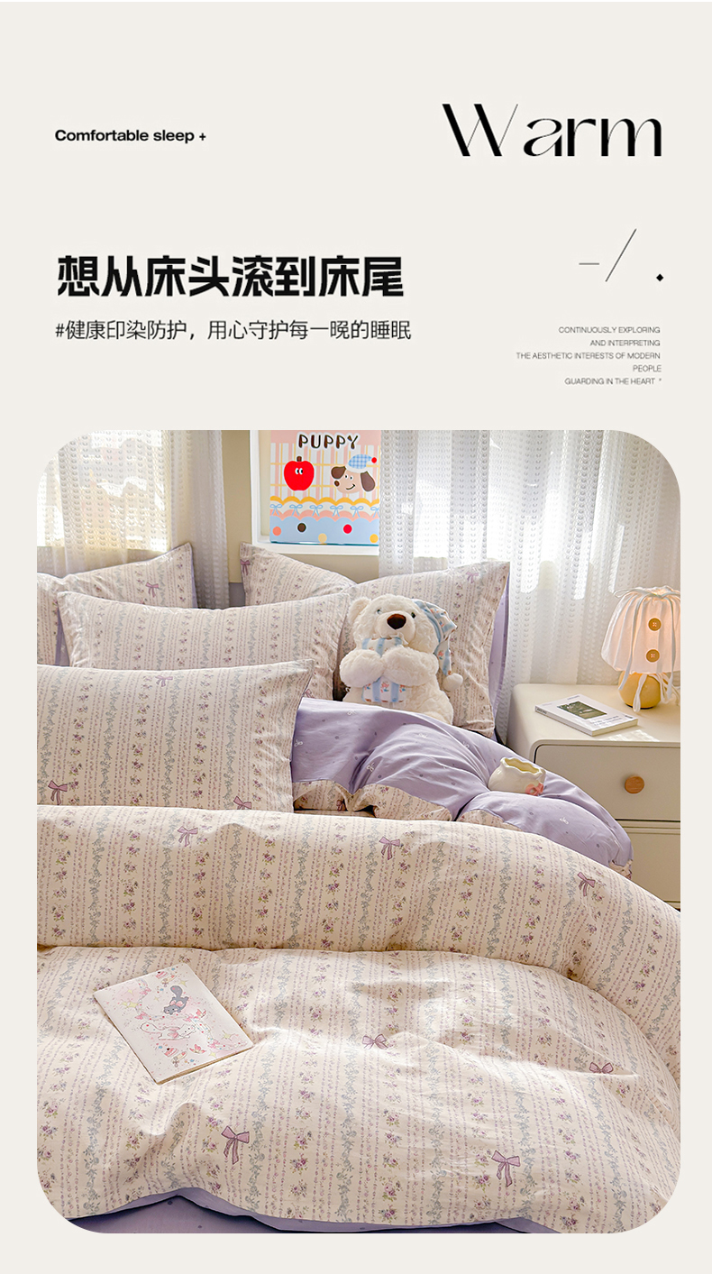 (总)呗旺鹿 2026新款全棉40支12868花草系列四件套,紫韵,丰收,花草集,花海紫嫣,花园兔,清雅,兔彼得,晓露含香