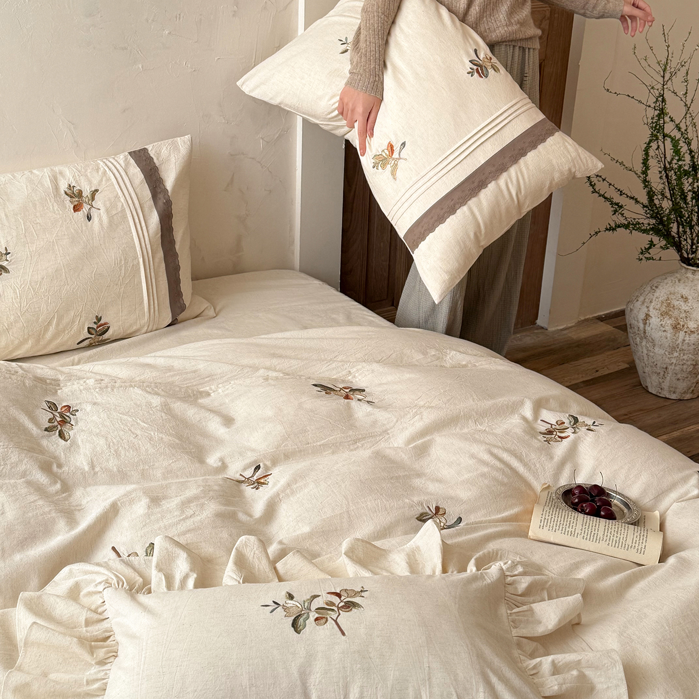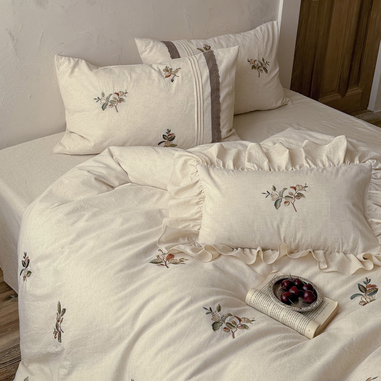 当前位置: 91家纺网 > 商品网购 > 床品套件 > 四件套 > 棉麻四件套 > (总)鹿班家居 2026春季新品色织棉麻精密刺绣系列四件套-秋桉花信(标准会员-20元)