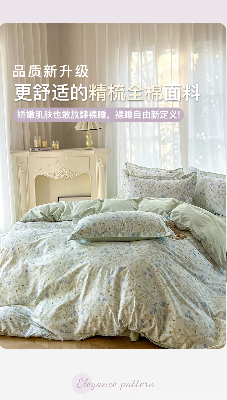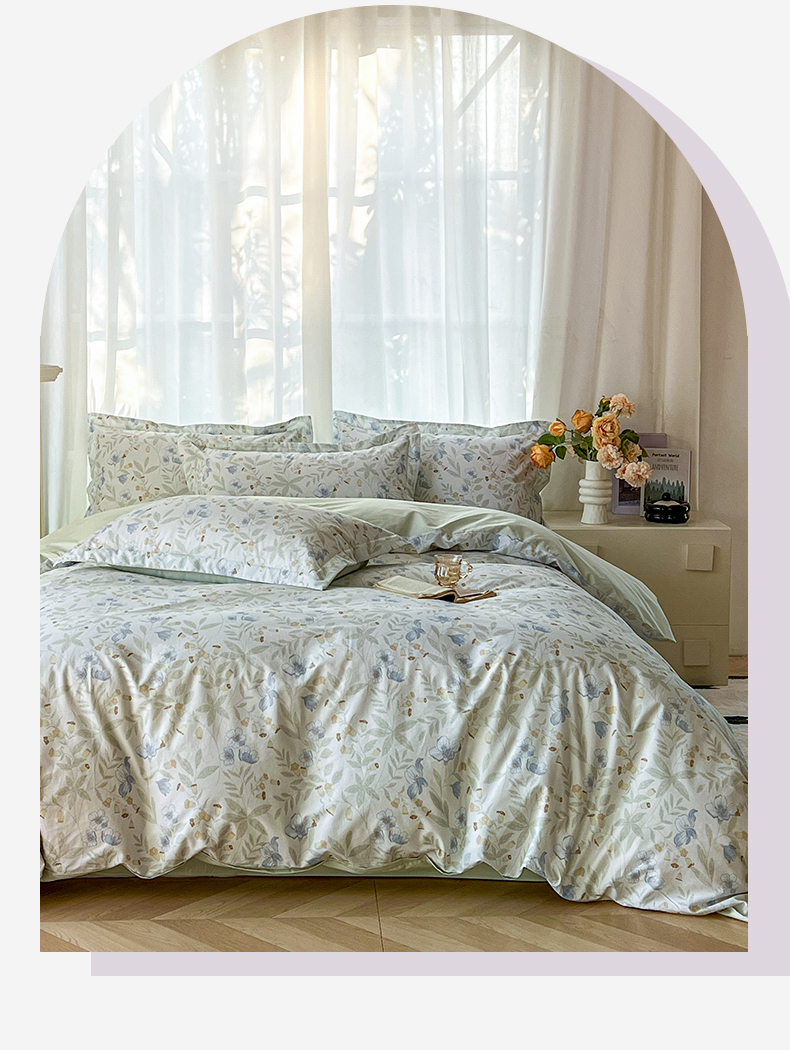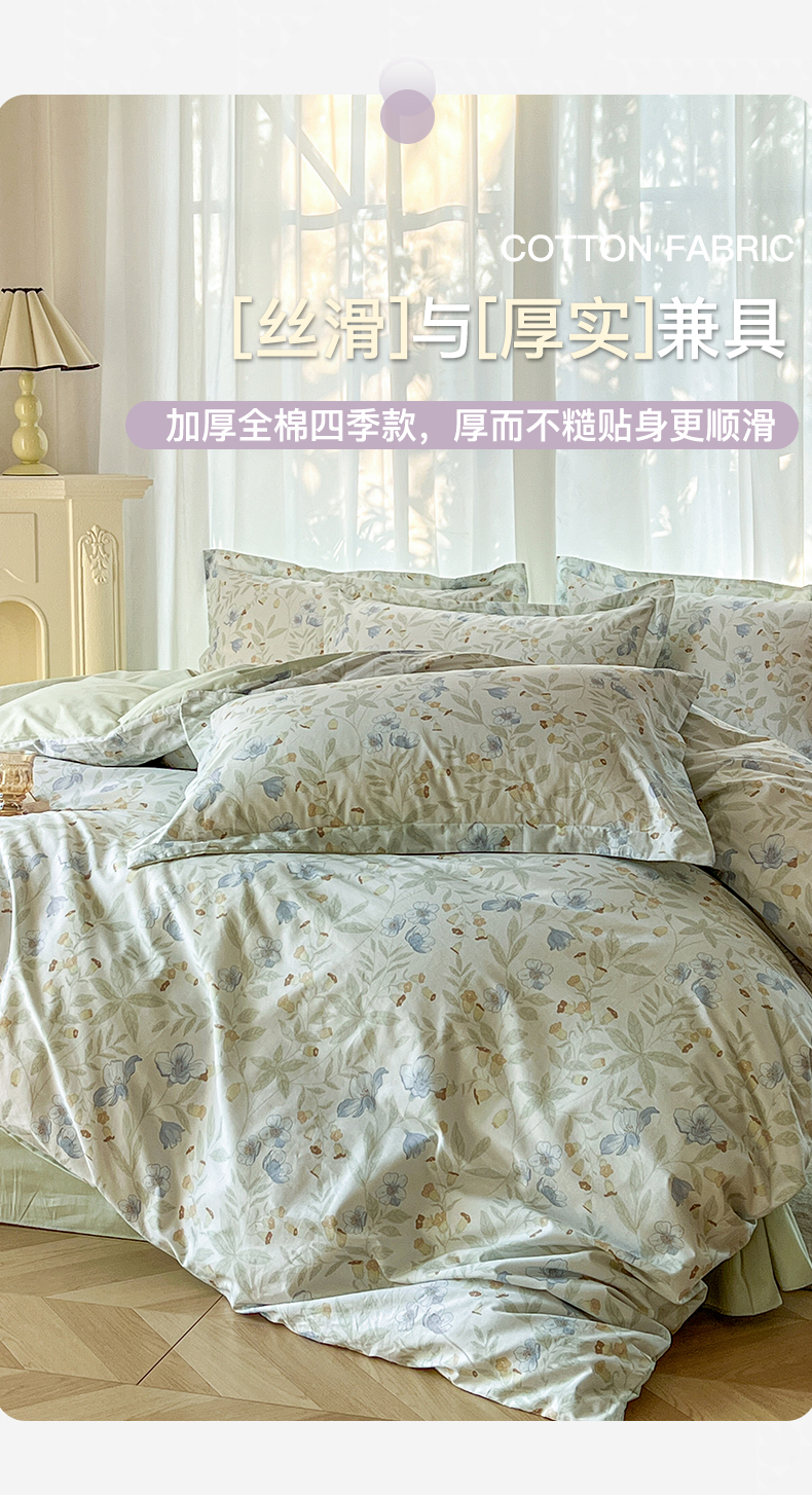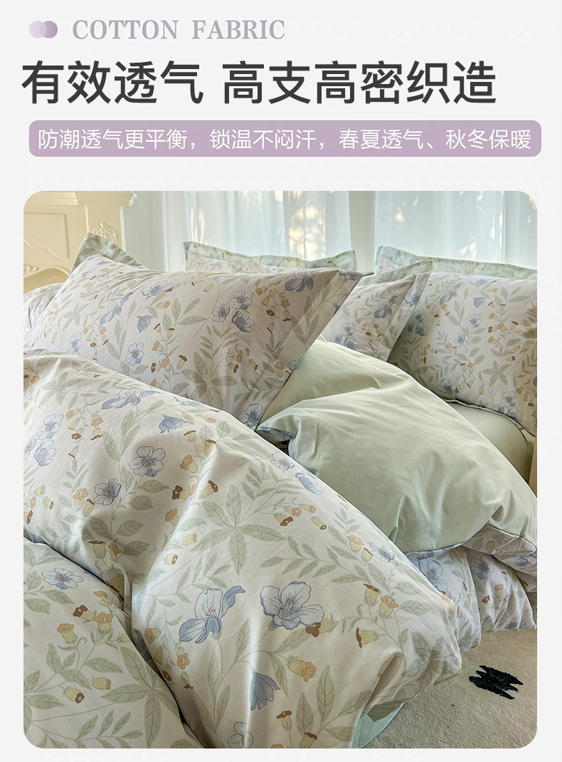 卧趣家纺 2026新款纯棉花卉系列全棉印花四件套 宛春-兰