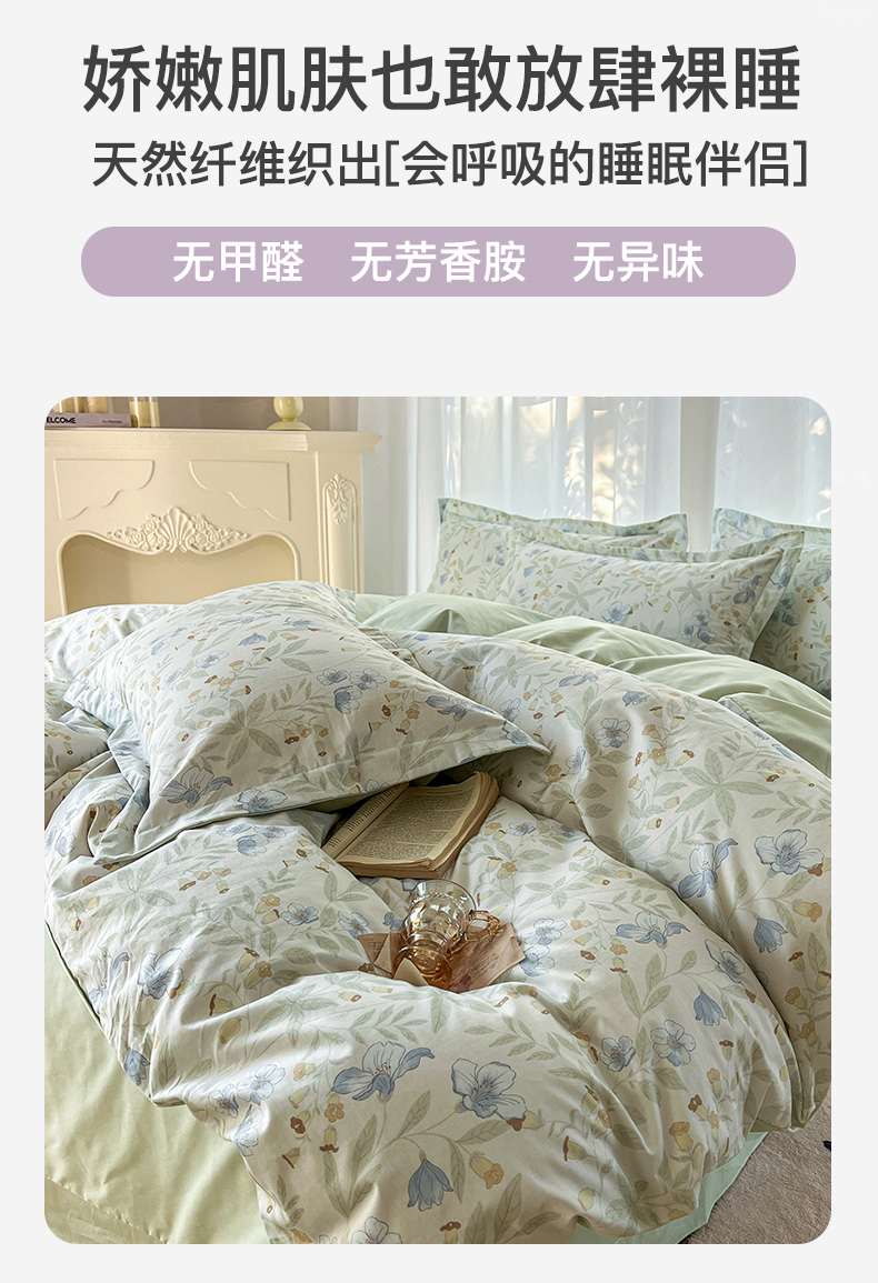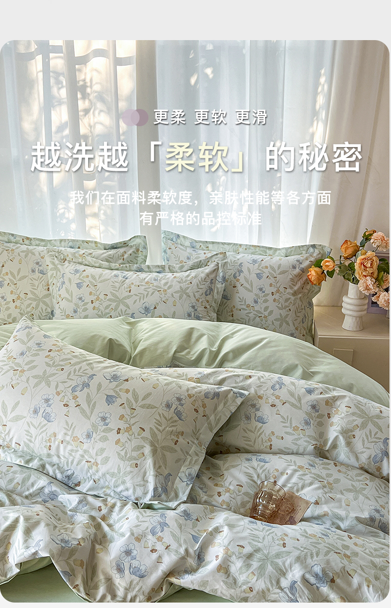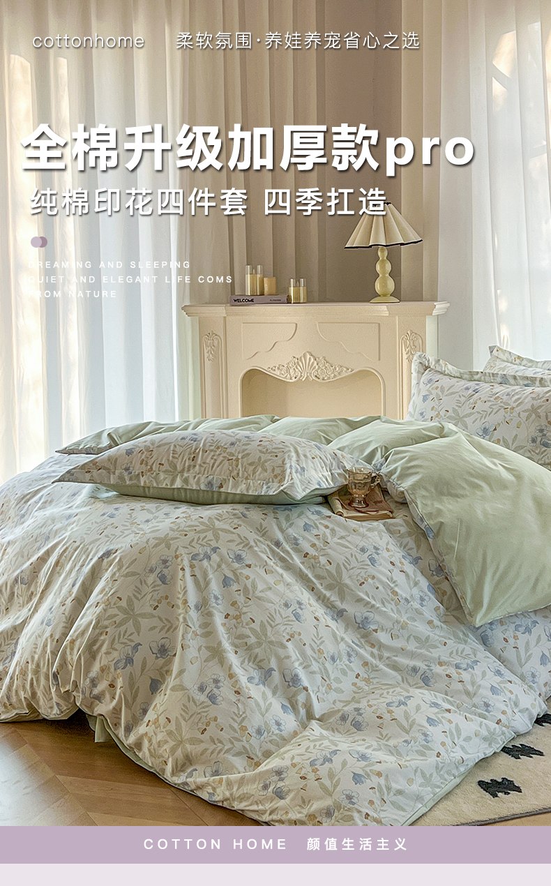 卧趣家纺 2026新款纯棉花卉系列全棉印花四件套 宛春-兰