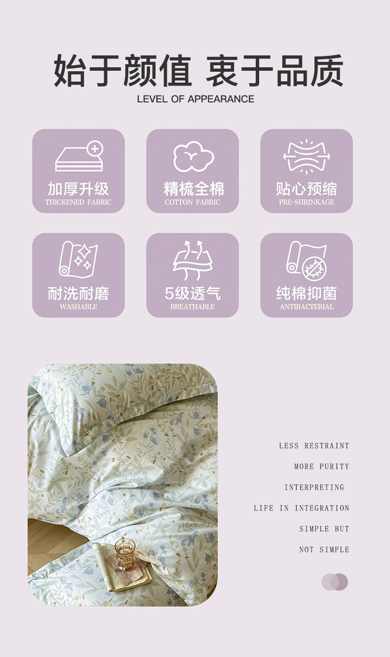 (总)卧趣家纺 2026新款纯棉花卉系列全棉印花四件套,风铃-紫,花悦容,佳昕-黄,嘉卉-紫,沐霖-桔,清珞-灰,清悠-粉,宛春-兰,晚柠-绿,晚柠-紫,秀颜-兰