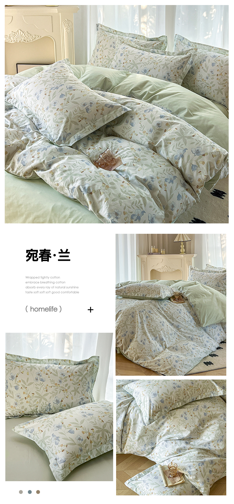 商品名称:卧趣家纺 2026新款纯棉花卉系列全棉印花四件套 宛春-兰