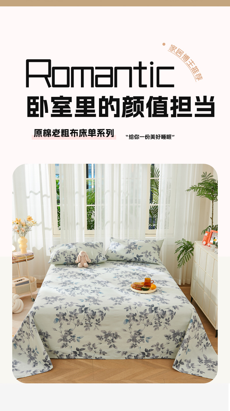 (总)爱彼家纺 2026新款升级细沙印花老粗布床单单品床单床单单件-细沙系列四,花笺,花漾手礼,花屿南瓜,蓝花序,蓝菊绘,山河日立,甜心