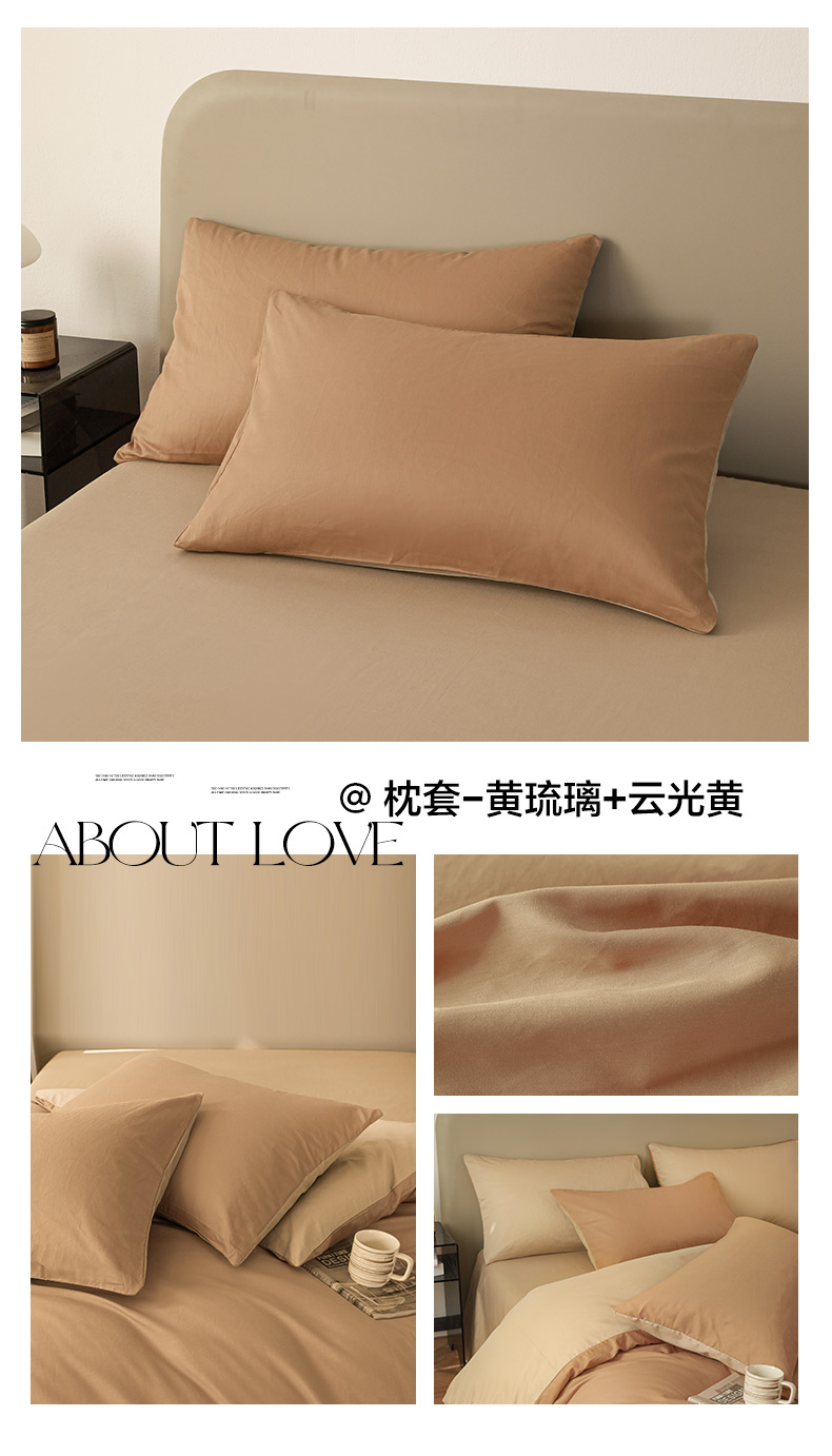 商品名称:盛馨家纺 2026新款40长绒棉ins美拉德色系纯色双拼全棉单品枕套 黄琉璃+云光黄