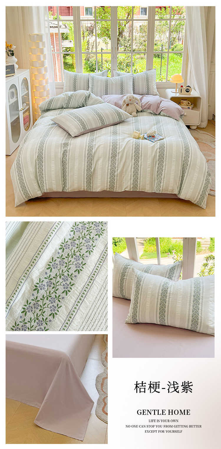 【天竺棉拼色四件套】拼色天竺棉纯棉针织棉四件套纯色拼色新疆天竺棉裸睡,白茶清欢,陌上春芽,香芋紫,紫粉+奶茶