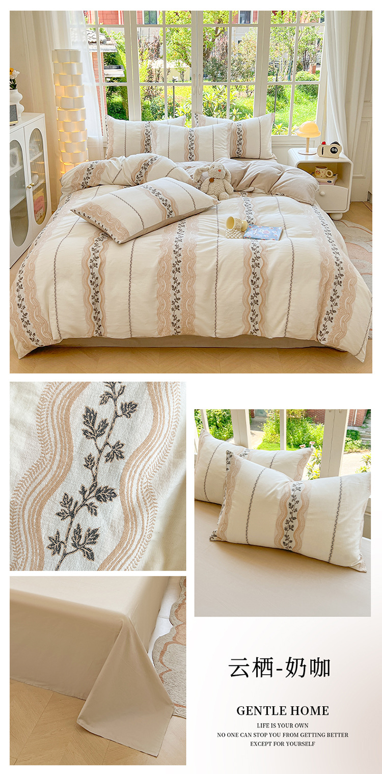 良品汇馆 2026【全棉色织提花四件套】全棉色织提花四件套良品A类双拼提花床品 杏花-浅黄