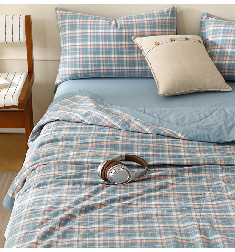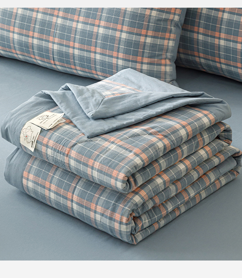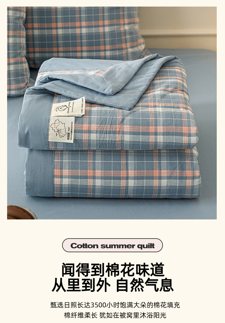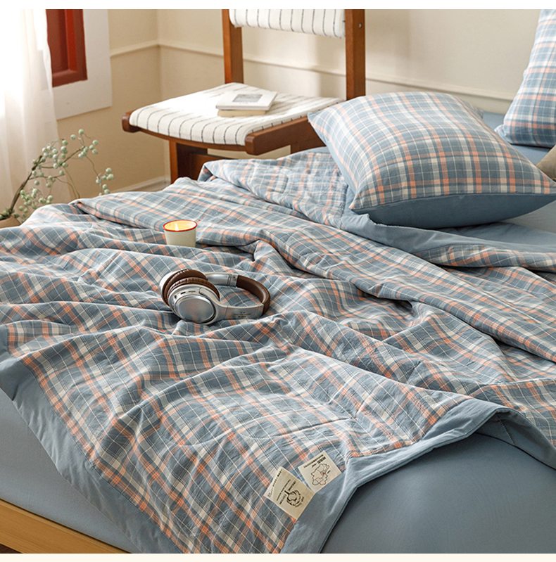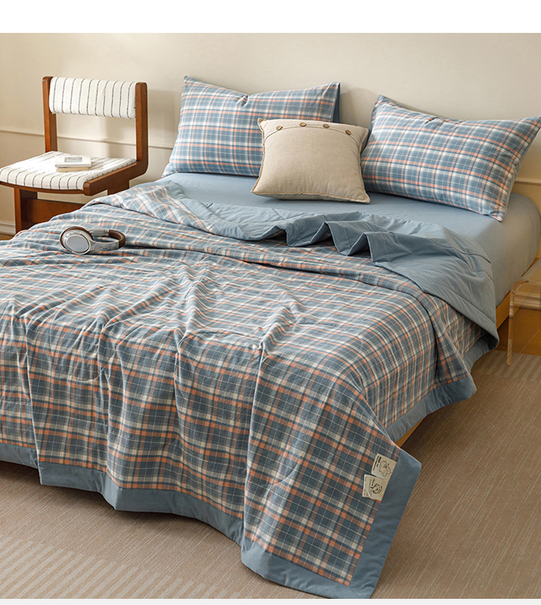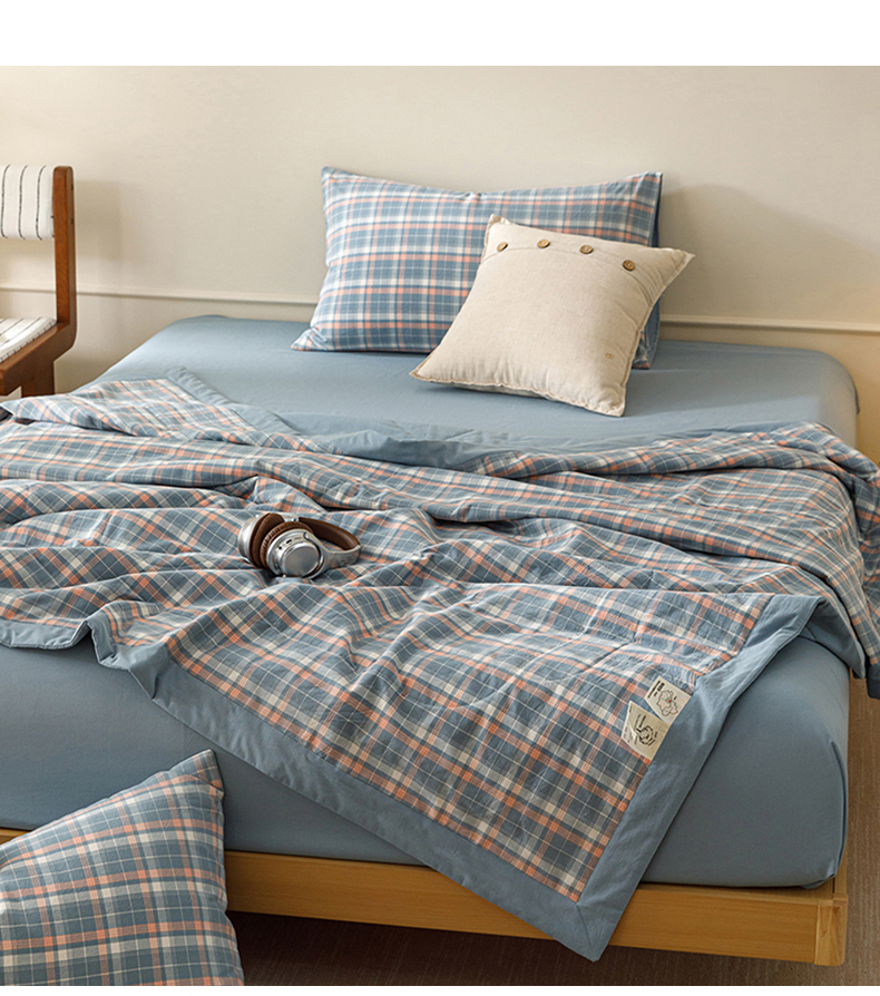悦然毛巾被 2026新款全棉水洗棉夏被夏凉被空调被 暖格晚风蓝