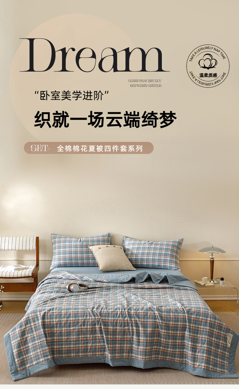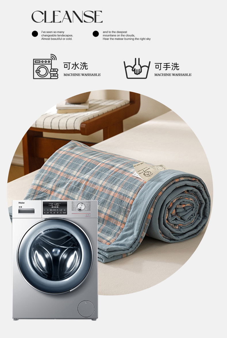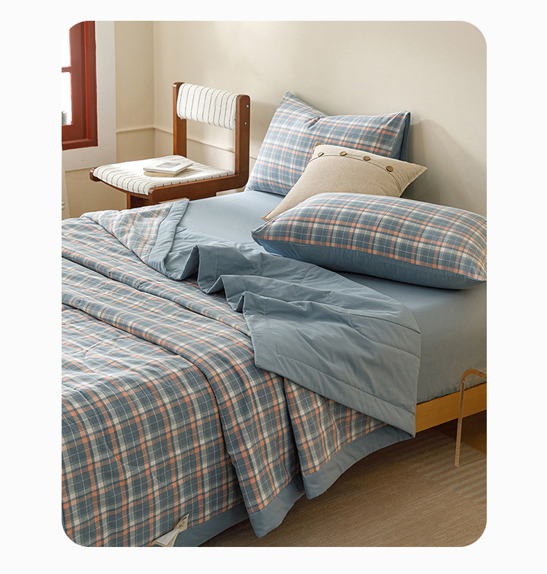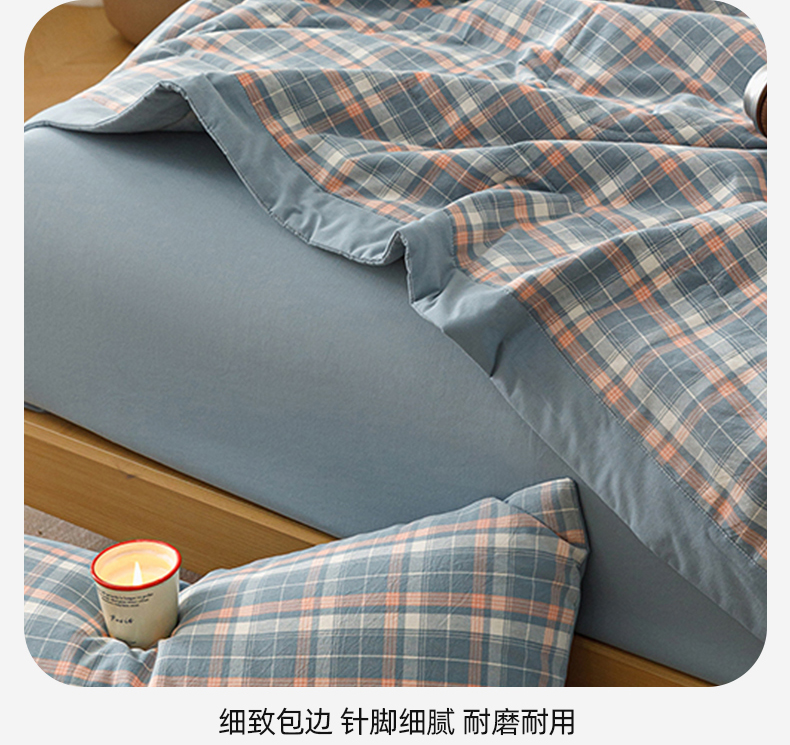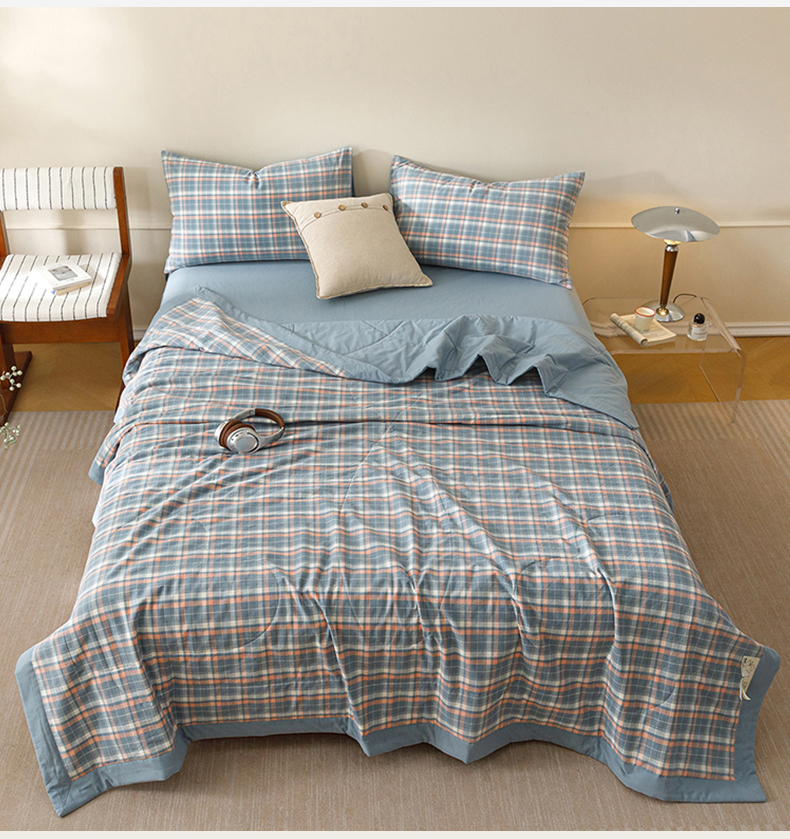 悦然毛巾被 2026新款全棉水洗棉夏被夏凉被空调被 暖格晚风蓝