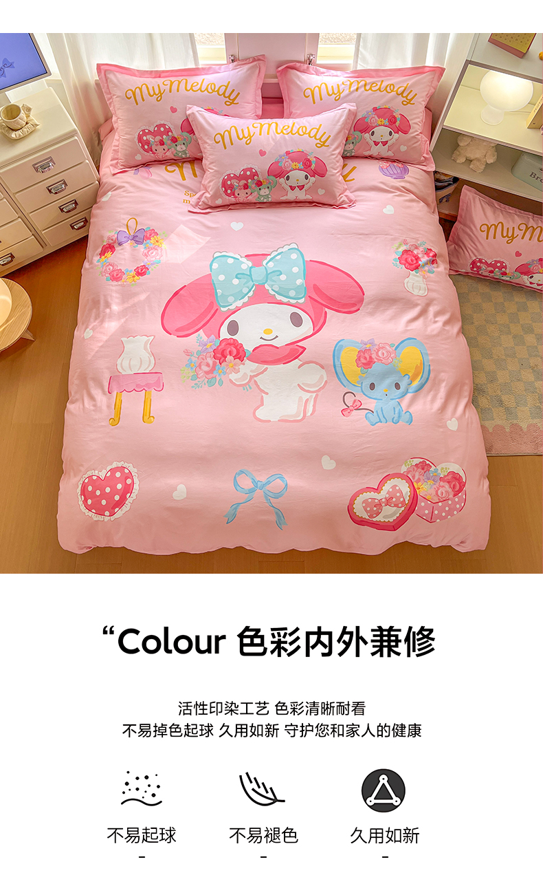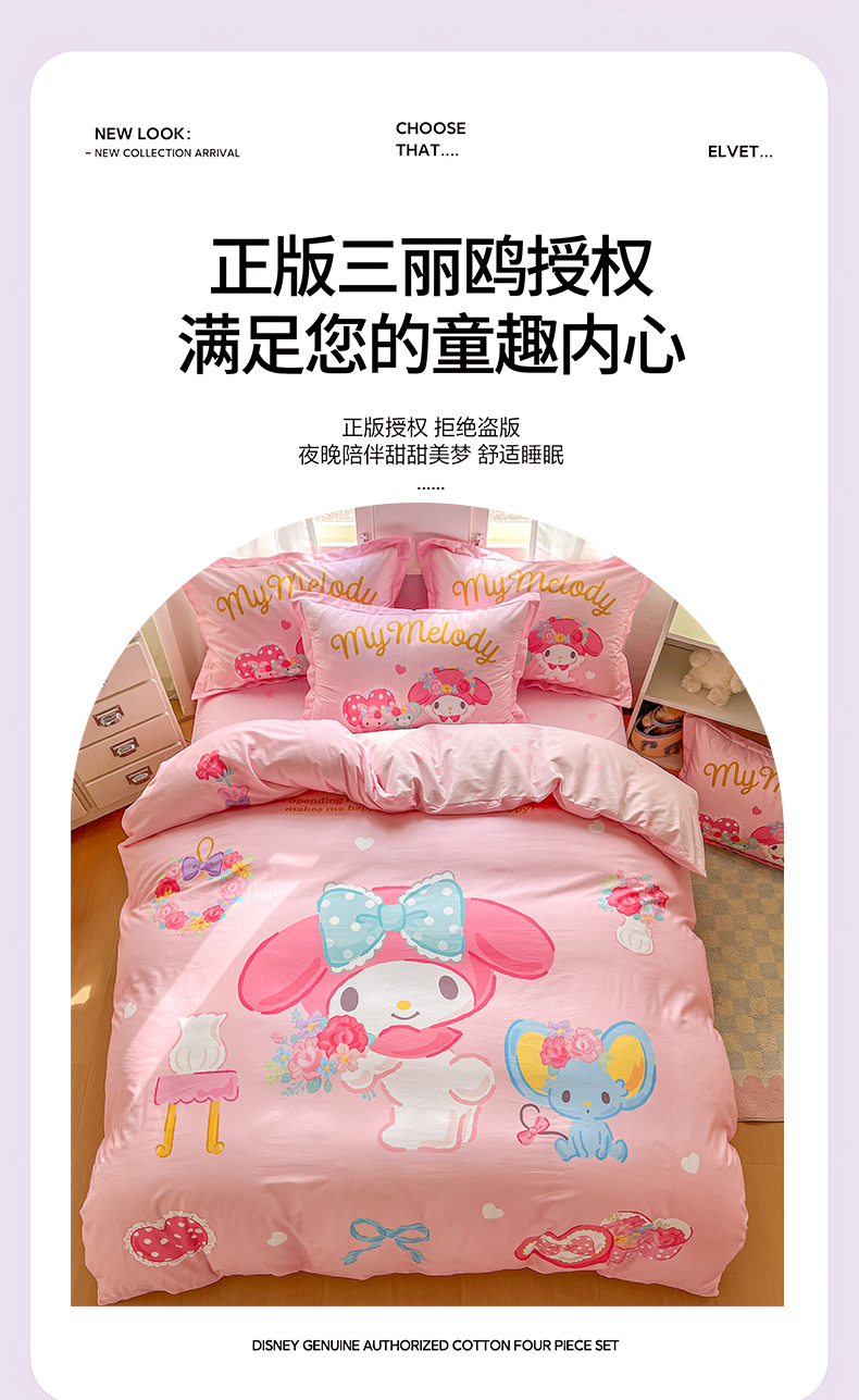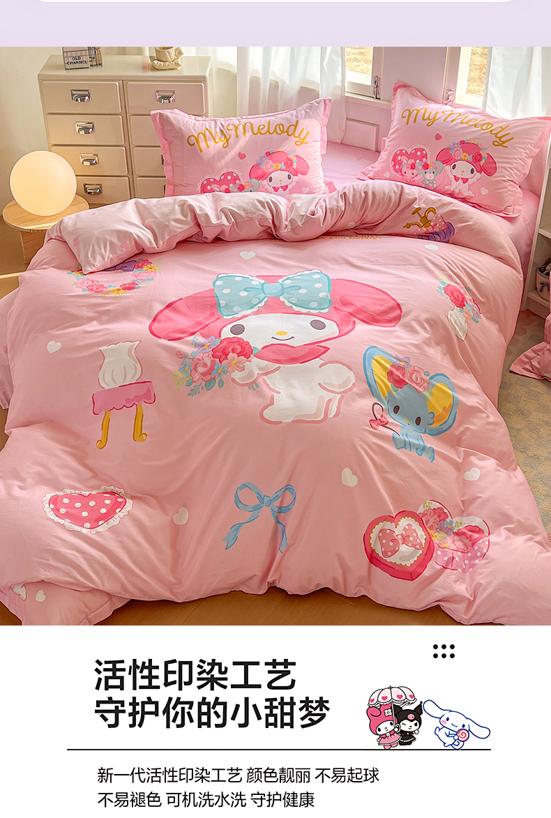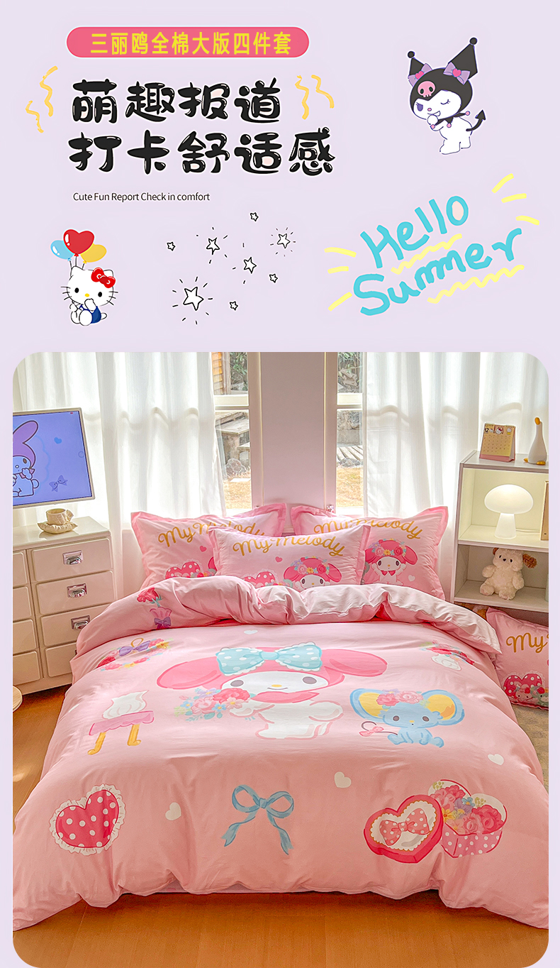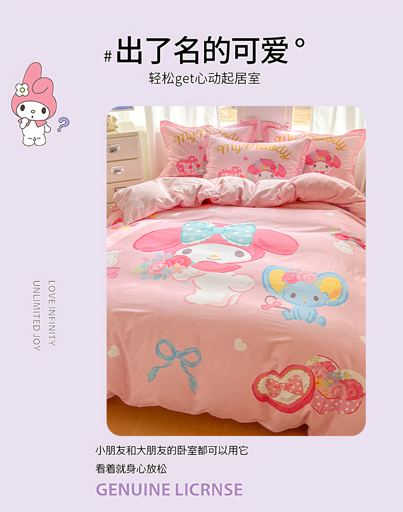 当前位置: 91家纺网 > 商品网购 > 床品套件 > 四件套 > 全棉普通四件套 > 浩诚 2026新款专版三丽鸥hellokitty库洛米正版授权大版全棉纯棉四件套 花花美乐蒂