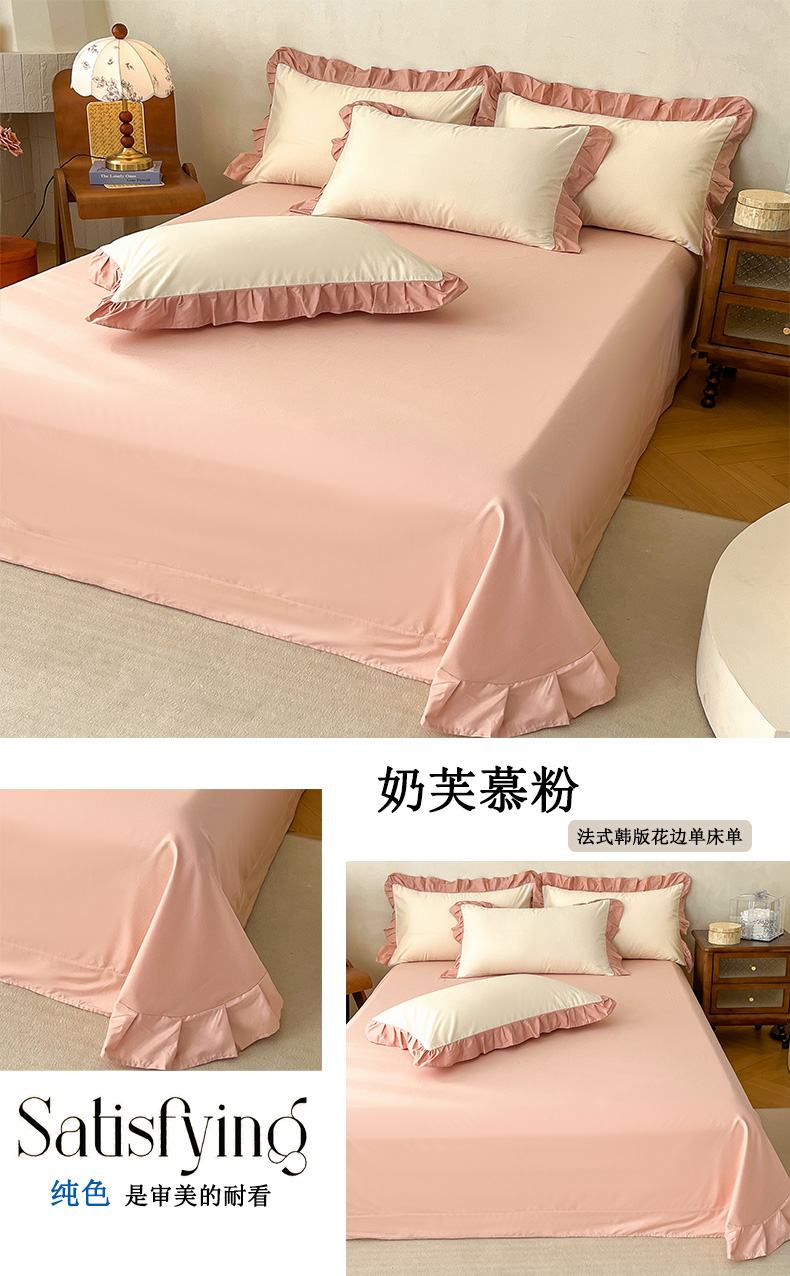 商品名称:艾迪尚家纺 2026法式韩版荷叶边纯色长绒棉纯棉单床单单品床单床单单件 云灰仙女粉