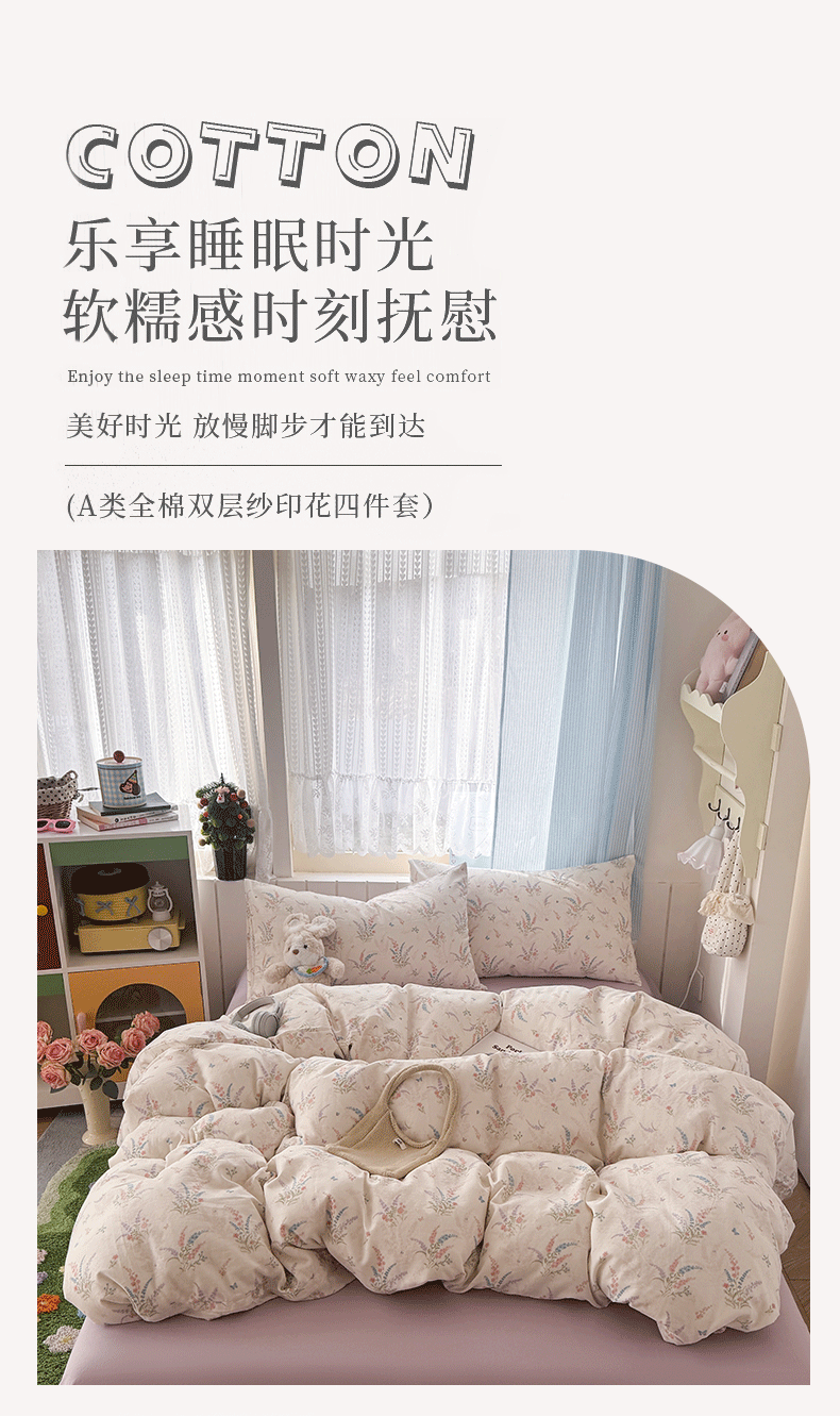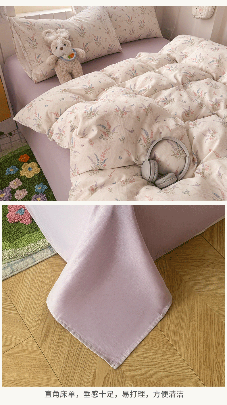 当前位置: 91家纺网 > 商品网购 > 床品套件 > 四件套 > 全棉普通四件套 > 爱思佳 2026新款全棉纯棉双层纱基款系列四件套 薰衣草