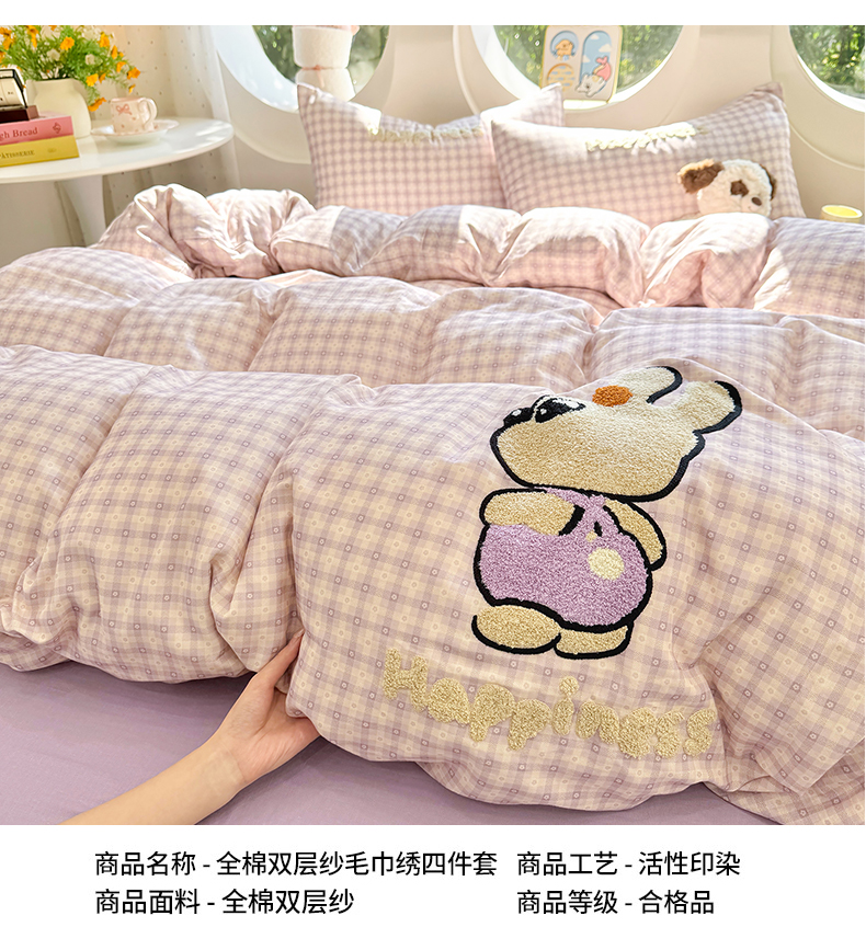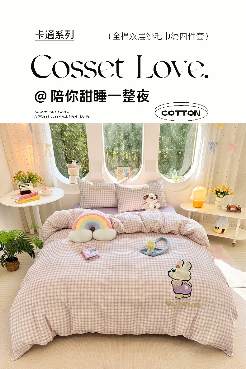 (总)爱思佳 2026新款全棉纯棉双层纱基款系列四件套,初春,蒂芙尼,费尔岛小熊,汉堡熊,花汐,花园里,可爱星人,快乐动物城,莓果熊,萌宠,沐雨花朝,暖阳绿意,女孩乐园,千禧马,十里桃花,条纹星星,兔儿森灵,喜喜兔,小白马,星星派对,雪花狗,薰衣草,摇摇马,樱桃仙子