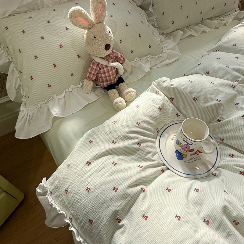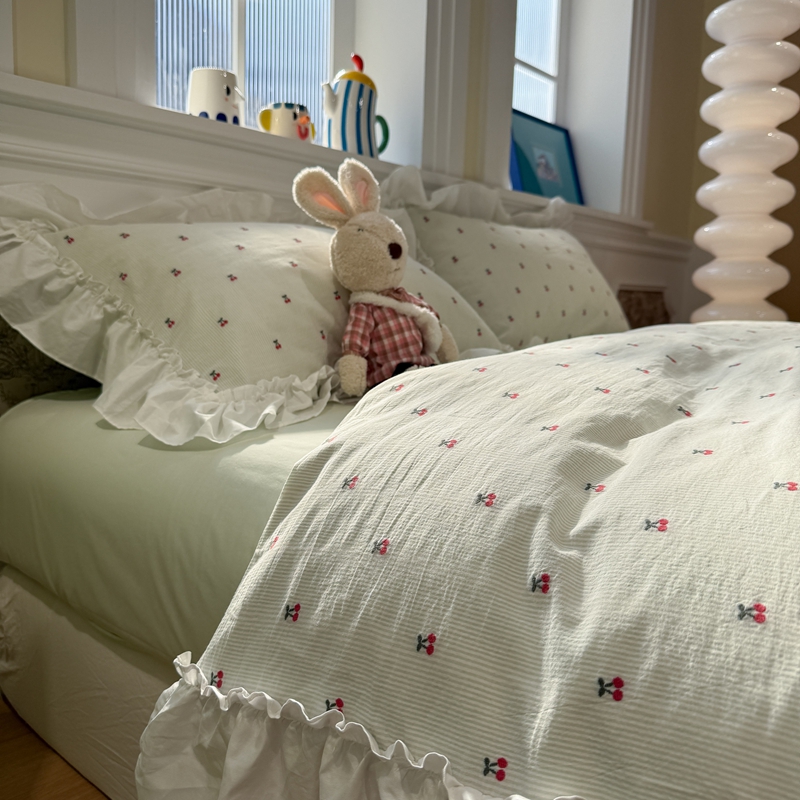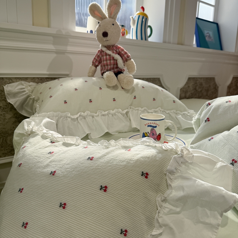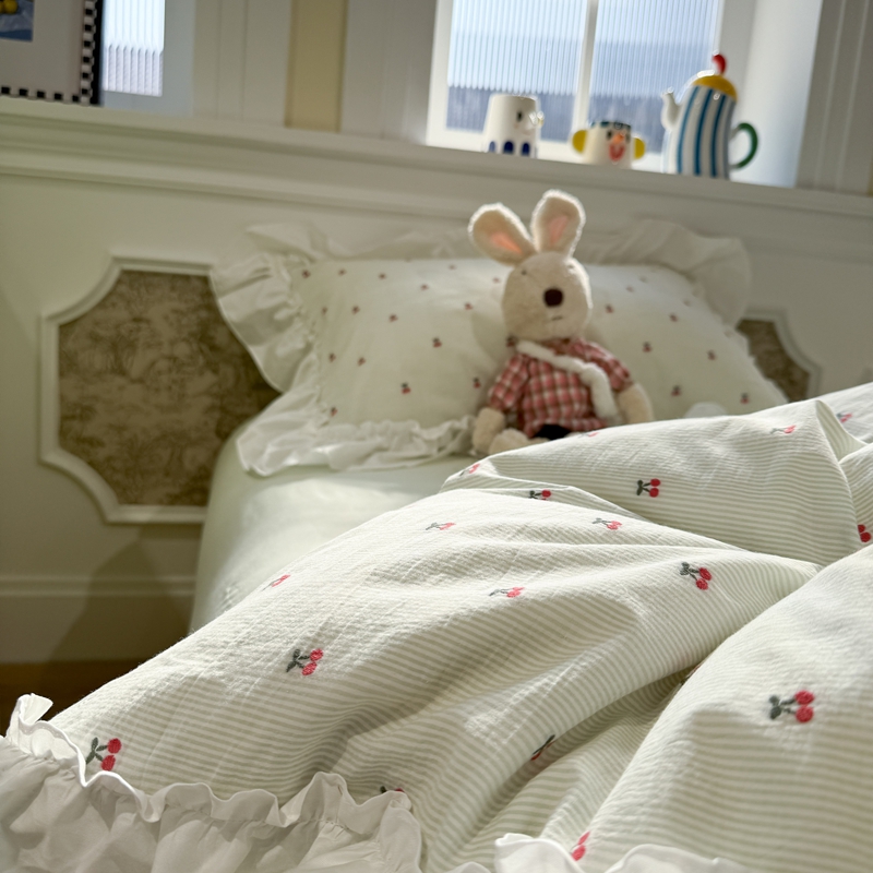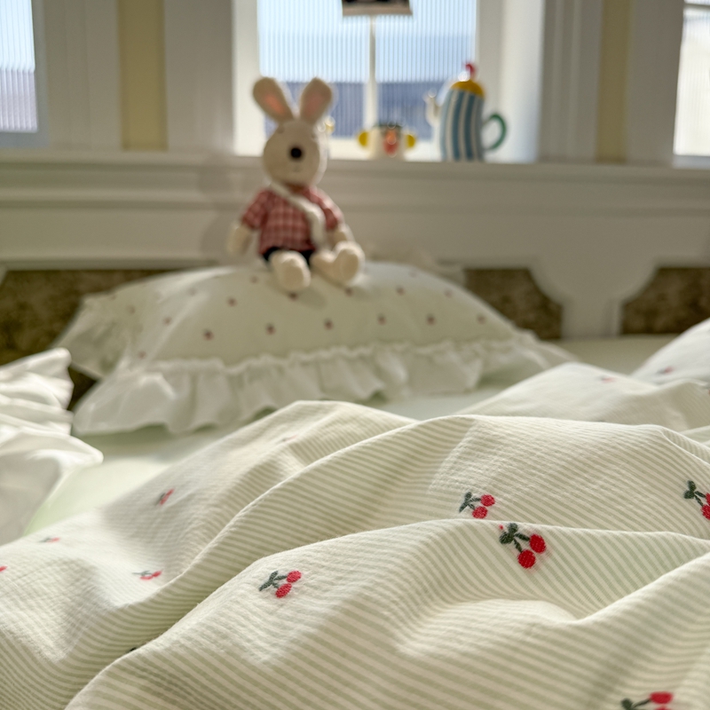 觅糖家纺 2026新款全棉水洗棉色织提花四件套-樱桃甜梦(会员-5) 樱桃甜梦绿